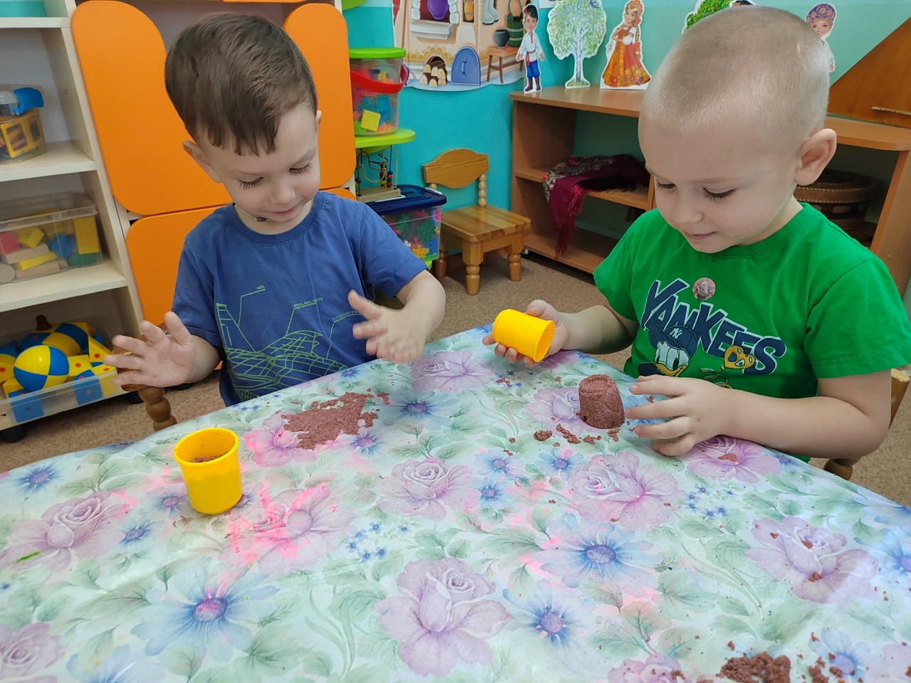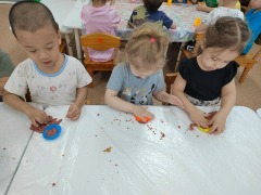 Вот и воспитанники второй младшей группы «Кораблик», под руководством педагога, решили поиграть с таким чудо - песком. Игры с ним очень увлекли детей. Они трогали песок на ощупь, рассматривали его, поговорили о том, что кинетический песок может быть разного цвета, пытались пропустить его сквозь пальцы, лепили куличики, пересыпали его из одной емкости в другую, использовали формочки для лепки и делали интересные фигуры.