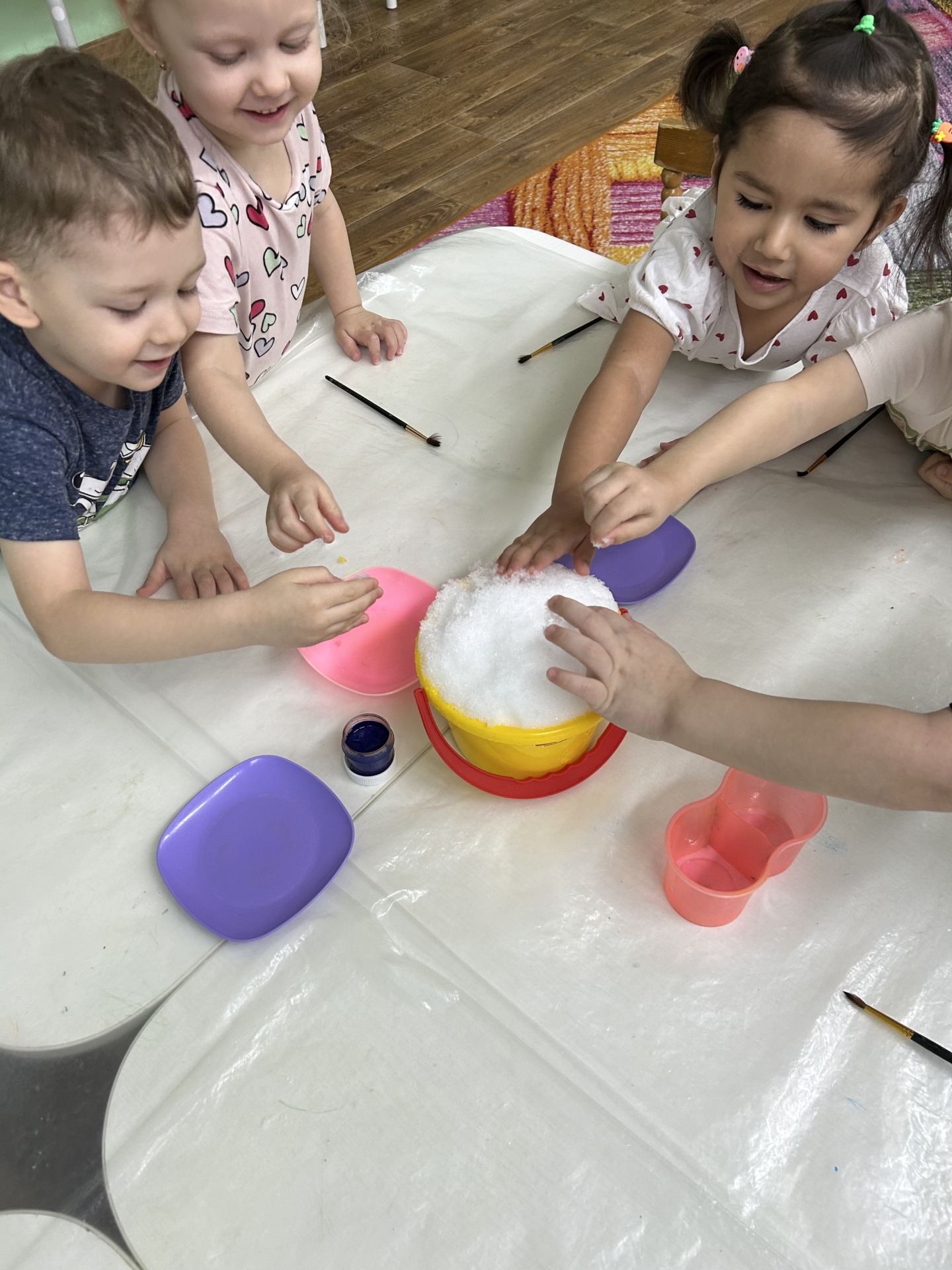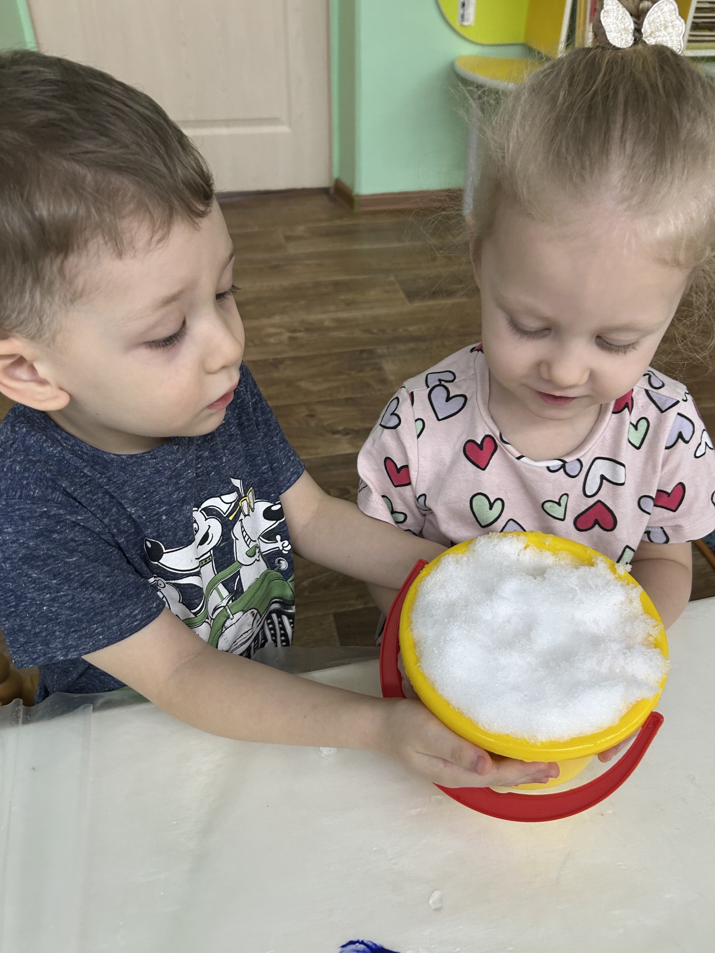 В раннем возрасте малыши проявляют интерес ко всему,что происходит вокруг. Экспериментирование помогает детям познавать окружающий мир.Наблюдая за явлениями неживой природы,знакомясь со свойствами снега,ребята получают новые впечатления и знания,испытывают положительные эмоций.Малыши из группы «Карусельки» рассматривали снег,набранный в ведерко,определили его белый цвет и отсутствие запаха.Затем малыши потрогали снег и почувствовали,что он холодный.В теплых ладошках снег растаял и превратился в воду. Ребята попробовали раскрасить снег красками и,о чудеса,рыхлый снег окрасился в разные цвета.В теплом помещении,заполненное снегом ведро через некоторое время опустело,на дне образовалась грязная вода,снег растаял.И наоборот,вода,налитая в тарелочку,на улице превратилась в ледышку. Последняя в теплых ладошках ребят вновь превратилась в водичку.Вот такие чудеса! Материал подготовил:воспитатель Галимова Алия Флюровна.