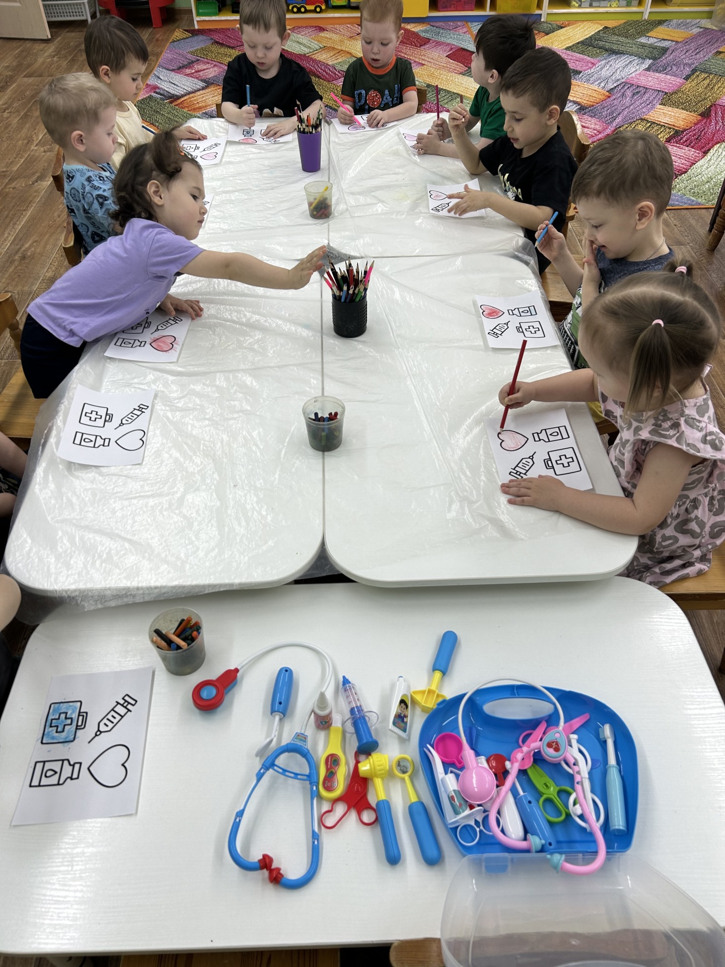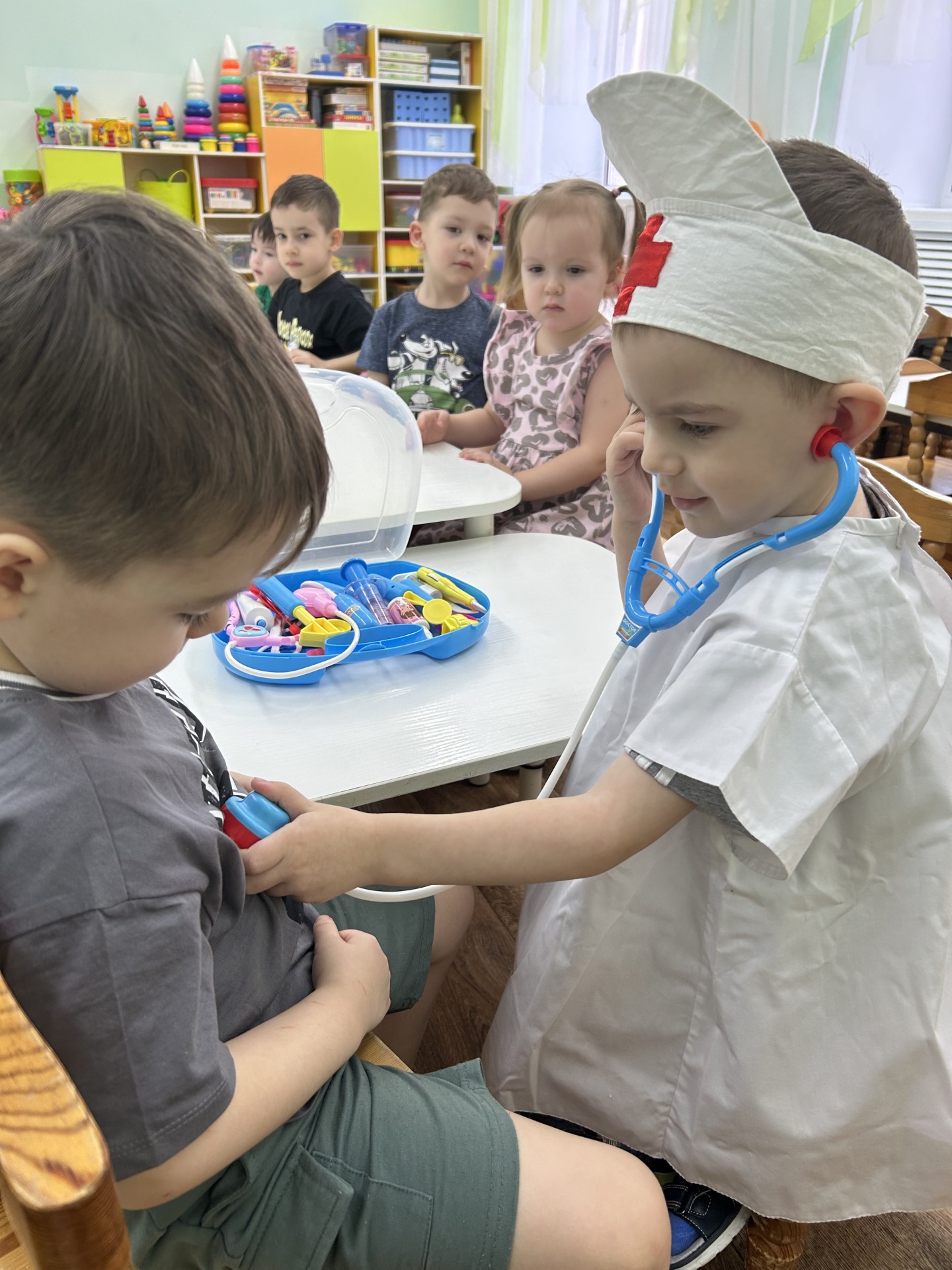 Наши воспитанники младшей группы «Карусельки» сделали увлекательное путешествие в мир медицины!Мы познакомились с важной и благородной профессией врача.Дети узнали о том,чем занимается врач,какие инструменты ему нужны и как он помогает людям.Ребята узнали,что врачи не только лечат болезни,но и заботятся о здоровье людей. В ходе игры «Врач и пациент» дети разыграли разные ситуаций,где один из них был врачом,а другой - пациентом.Они использовали игрушечные стетоскопы,термометры,шприцы.Это занятие помогло детям лучше понять,как важна работа врача и почему мы должны заботиться о своем здоровье.Может быть,кто-то из наших маленьких исследователей в будущем станет врачом!???Автор материала:Галимова Алия Флюровна.