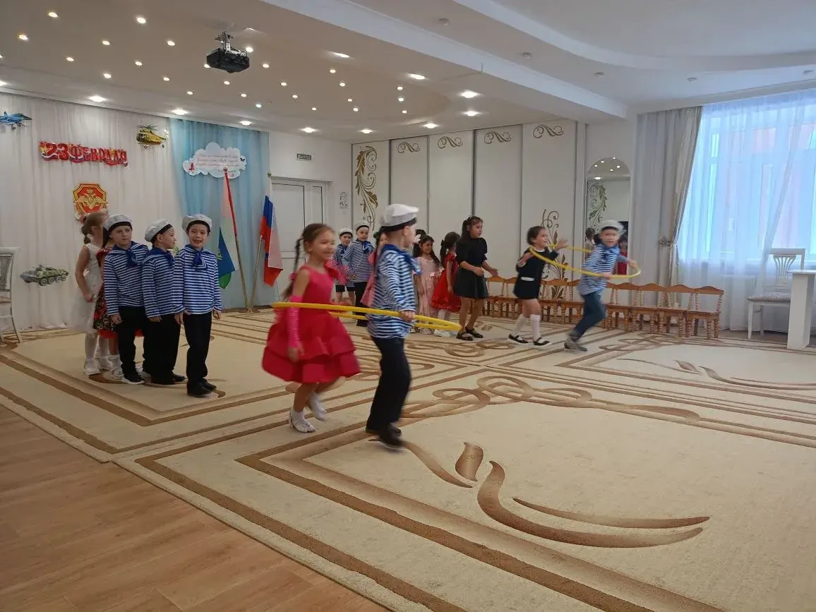 Накануне празднования Дня защитника Отечества в нашем детском саду проходят праздничные мероприятия. Мальчишки и девчонки не только поздравляют своих пап и дедушек с этим патриотическим праздником, но и сами чувствуют себя защитниками Родины. Началось мероприятие с полюбившейся ребятам песни «Россия – огромная страна». Далее дети торжественно и выразительно читали стихи для пап, пели песни «Пограничники», «Словно солдаты…», угадывали военные профессии. Интересно, весело и с азартом играли в игры «Граница», «Спасатели», «Собери военную технику», в которых ребята проявляли ловкость и смекалку. Бравые мальчишки в форме моряков с воодушевлением станцевали матросский танец «Яблочко» и спели песню «Все мы моряки». Особую атмосферу празднику придало активное участие в играх пап и дедушек – их энергия, искренняя вовлеченность и готовность вместе с детьми участвовать в мероприятии сделали праздник по настоящему незабываемым. Для ребят присутствие отцов – это не просто радость от совместной игры это и ощущение поддержки, гордости, близости.