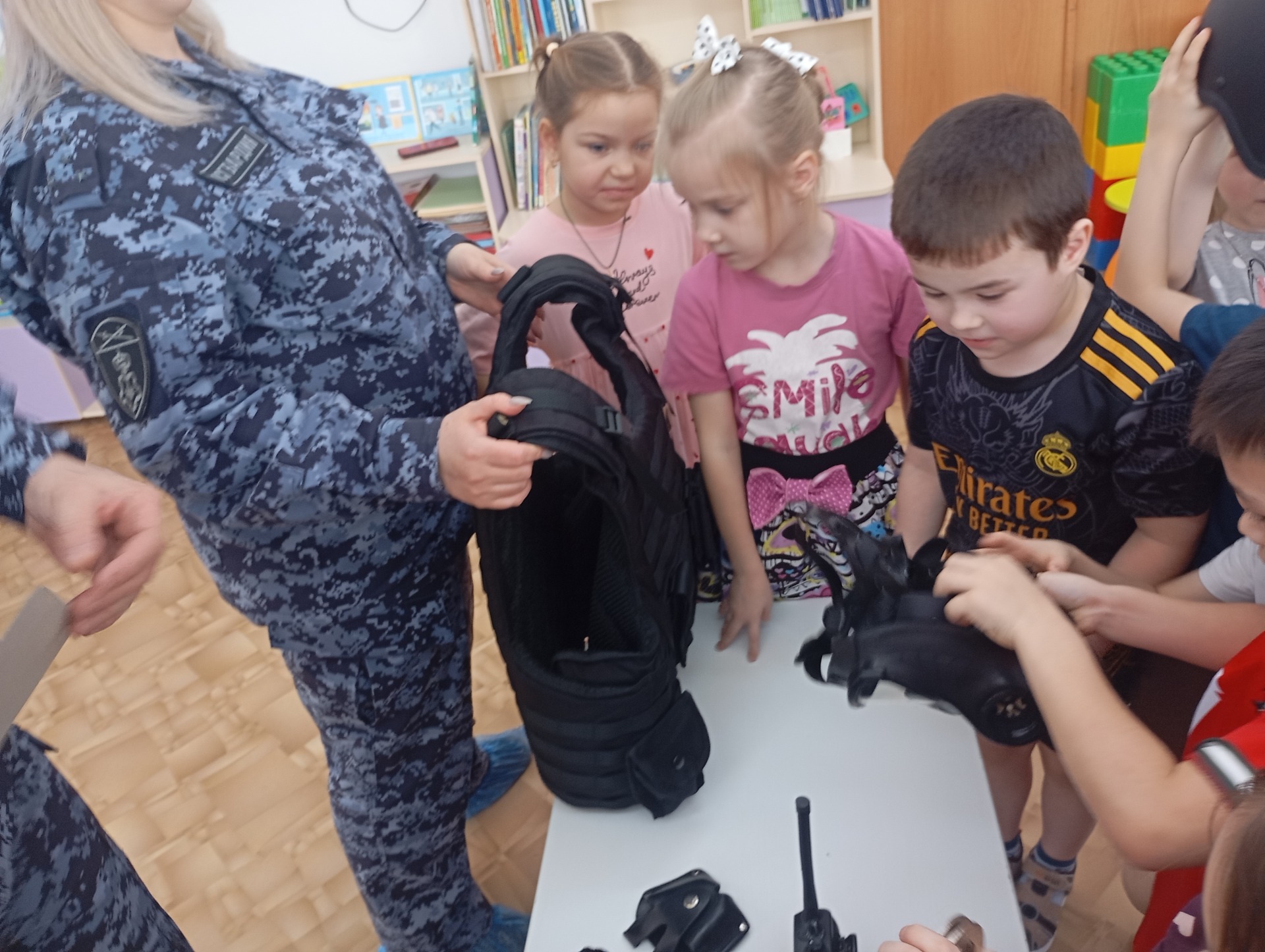 Сотрудники ведомства провели беседу на тему безопасности, поделились интересной информацией о своей службе и продемонстрировали некоторые элементы своей экипировки. Благодаря такому живому общению наши дети получили важные знания о том, как важно соблюдать правила безопасности, научились ориентироваться в сложных жизненных ситуациях и узнали о роли представителей силовых ведомств в нашей жизни.