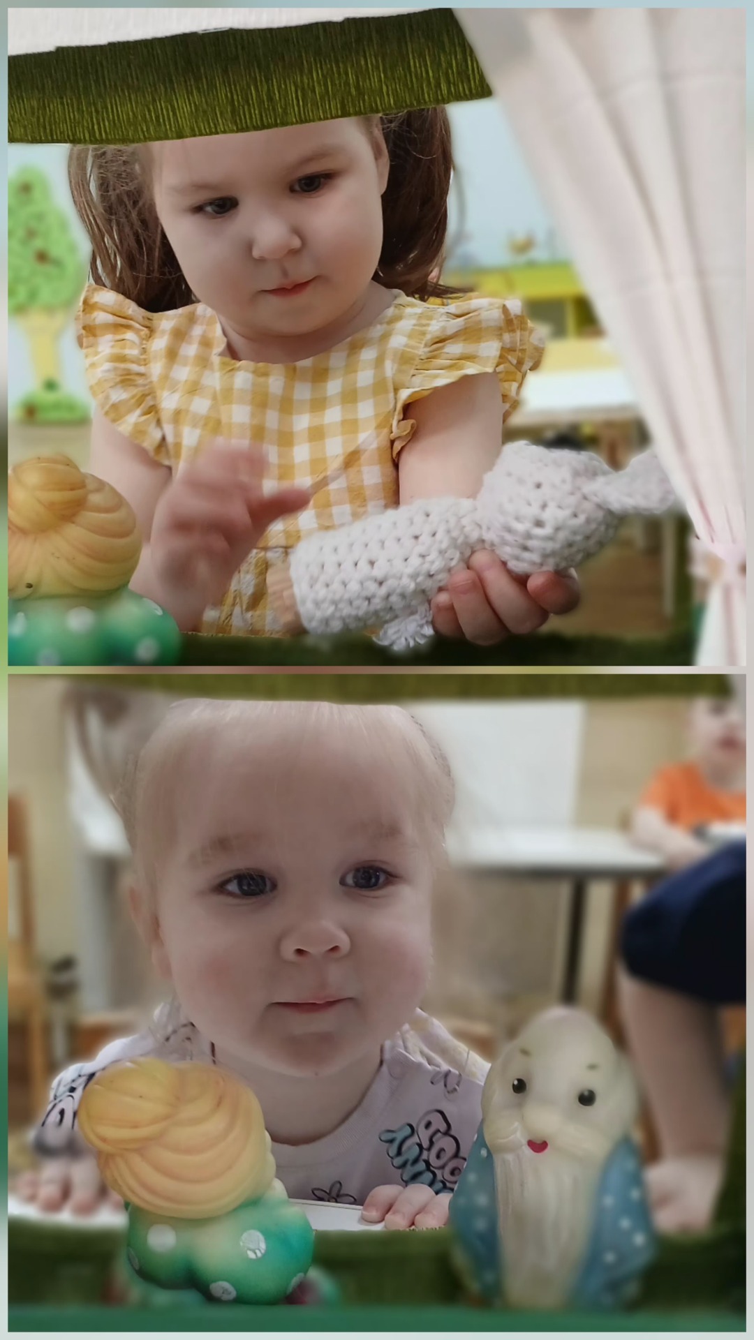 У воспитанников первой младшей группы «Лучики» прошел «сказочный день». Ребята с большим удовольствием посмотрели сказку - инсценировку, показанную воспитателем, а затем и сами разыграли сказку.