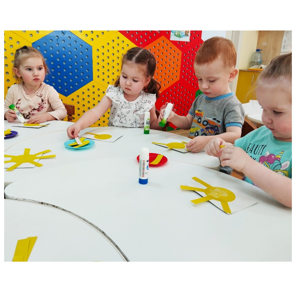 Читали с детьми стихи и рассказы о весне, играли в пальчиковые игры "Солнышко", «Дай нам, солнышко, тепла», в дидактические игры "Собери картинку", "Времена года", "Найди пару". На прогулках наблюдали, как с каждым днём меняется вокруг природа с приходом весны, играли в подвижные игры "Птички", "Солнышко и дождик". В конце недели вместе с малышами создали коллективную работу «Весеннее солнышко».