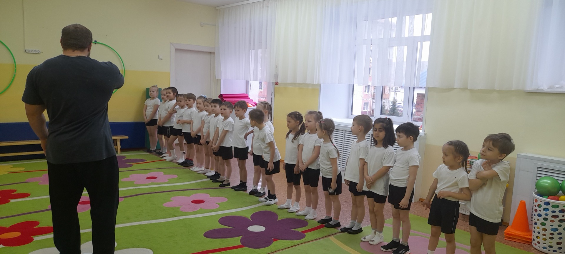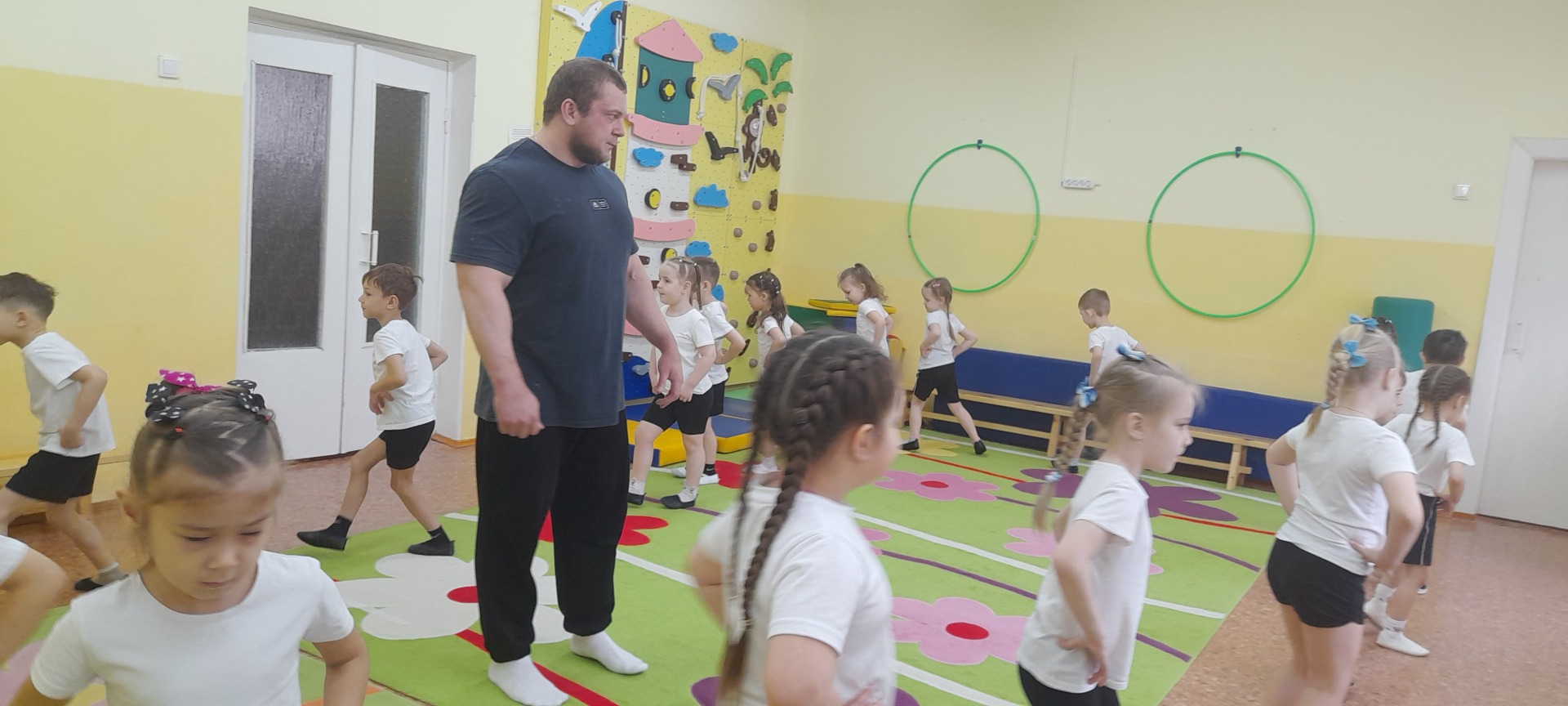 Под таким девизом прошла наша утренняя гимнастика, приуроченная к дню здоровья, а провел её папа Даши Шипуловой. Шипулов Павел Александрович работает тренером преподавателем по пауэрлифтингу (силовое троеборье) в спортивной школе ,, Молодость", он действующий спортсмен, многократный победитель России, Европы и мира. Является сильнейшим спортсменом в Р. Ф. ТОП - 2 с результатом 445 кг. (в жиме лёжа)