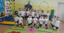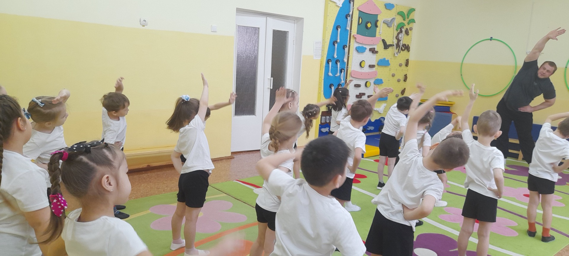 Так что зарядка прошла на высшем уровне, благодаря тренеру дети получили море положительных впечатлений, все старались. В конце сделали фото на память.