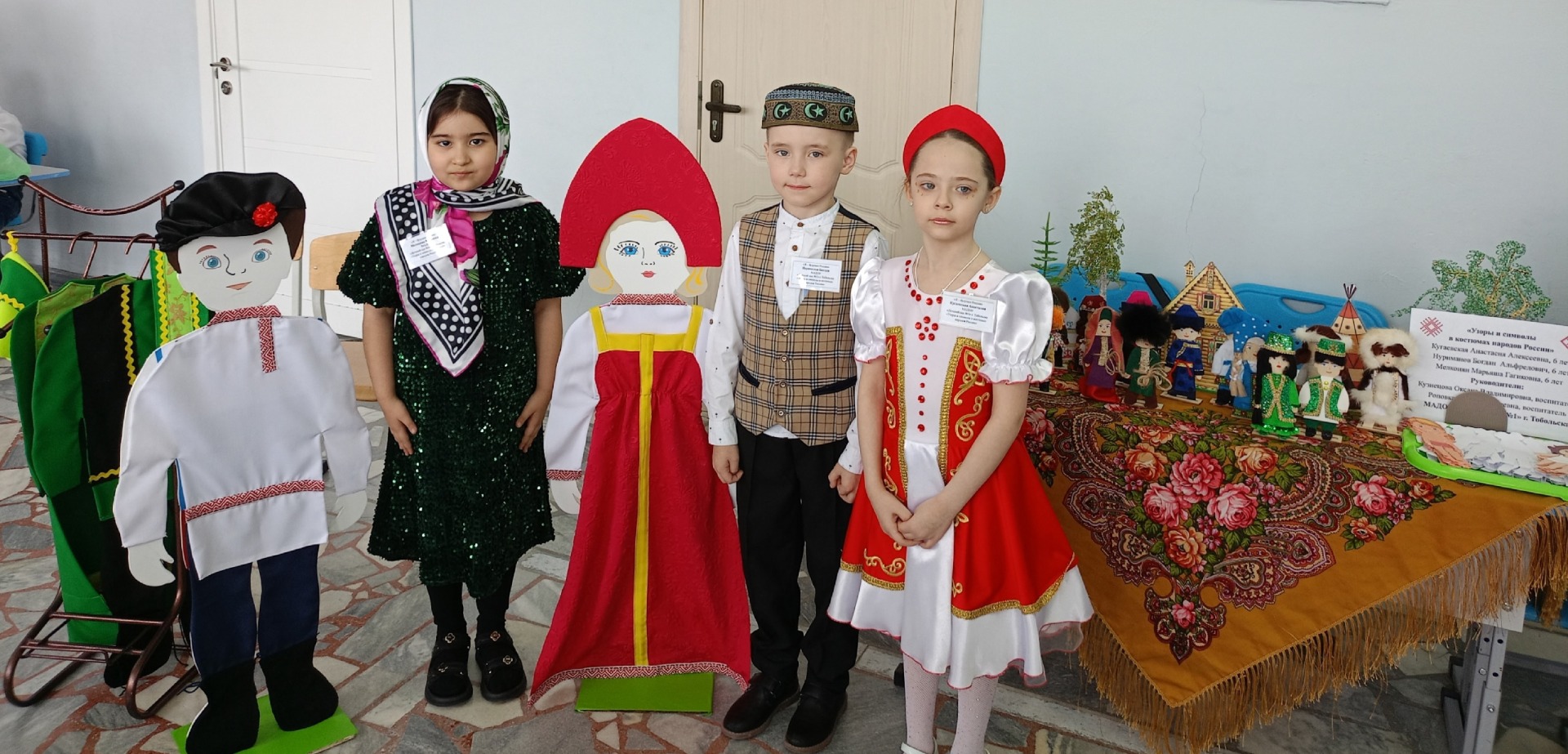 На выставке дети представили множество кукол разных народов России в традиционных костюмах. Дополнительно были показаны две куклы, для которых предусмотрена возможность смены костюмов. Для гостей также организовали интерактивную зону, где желающие могли украсить наряды бумажных кукол традиционными узорами и символами.