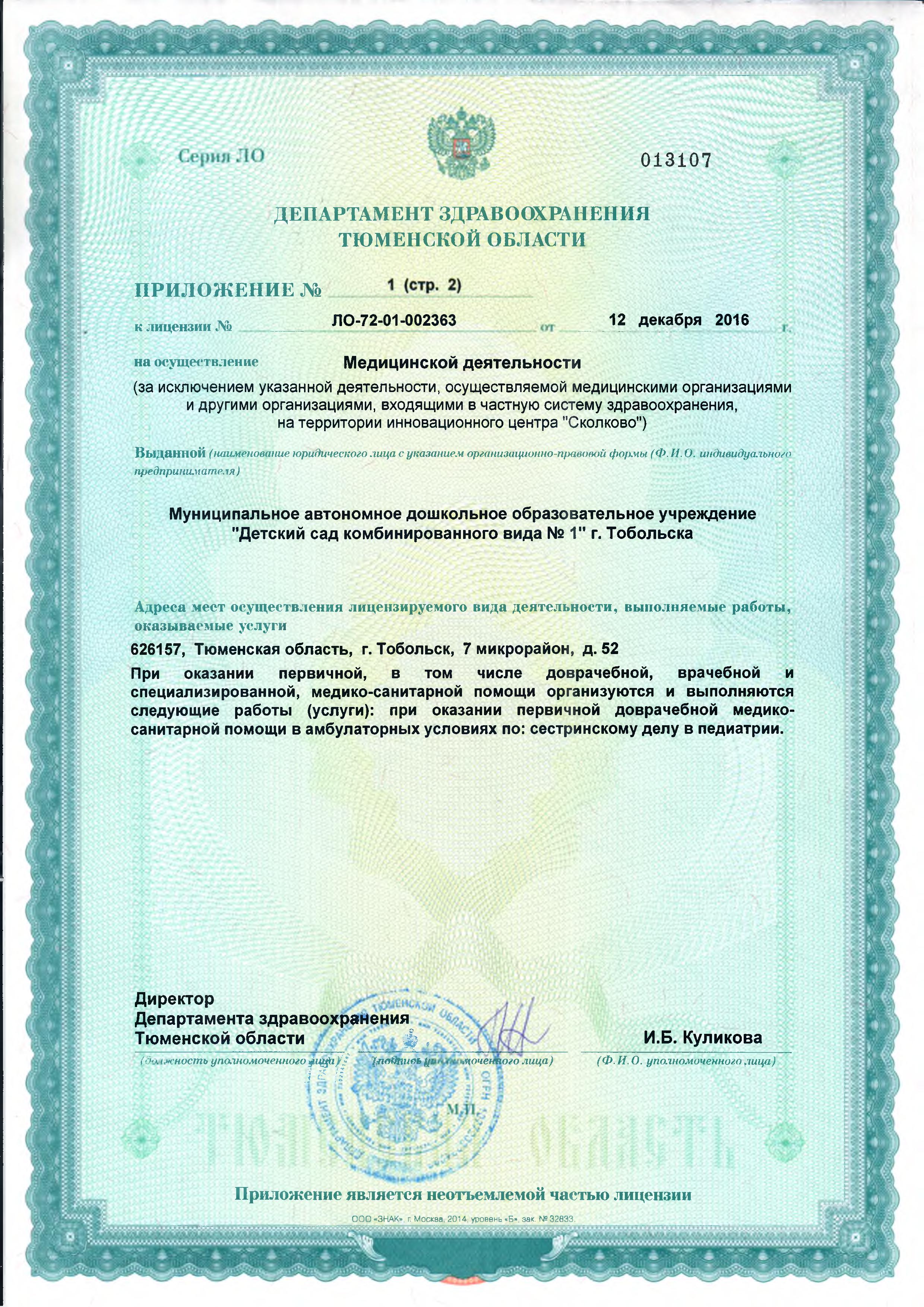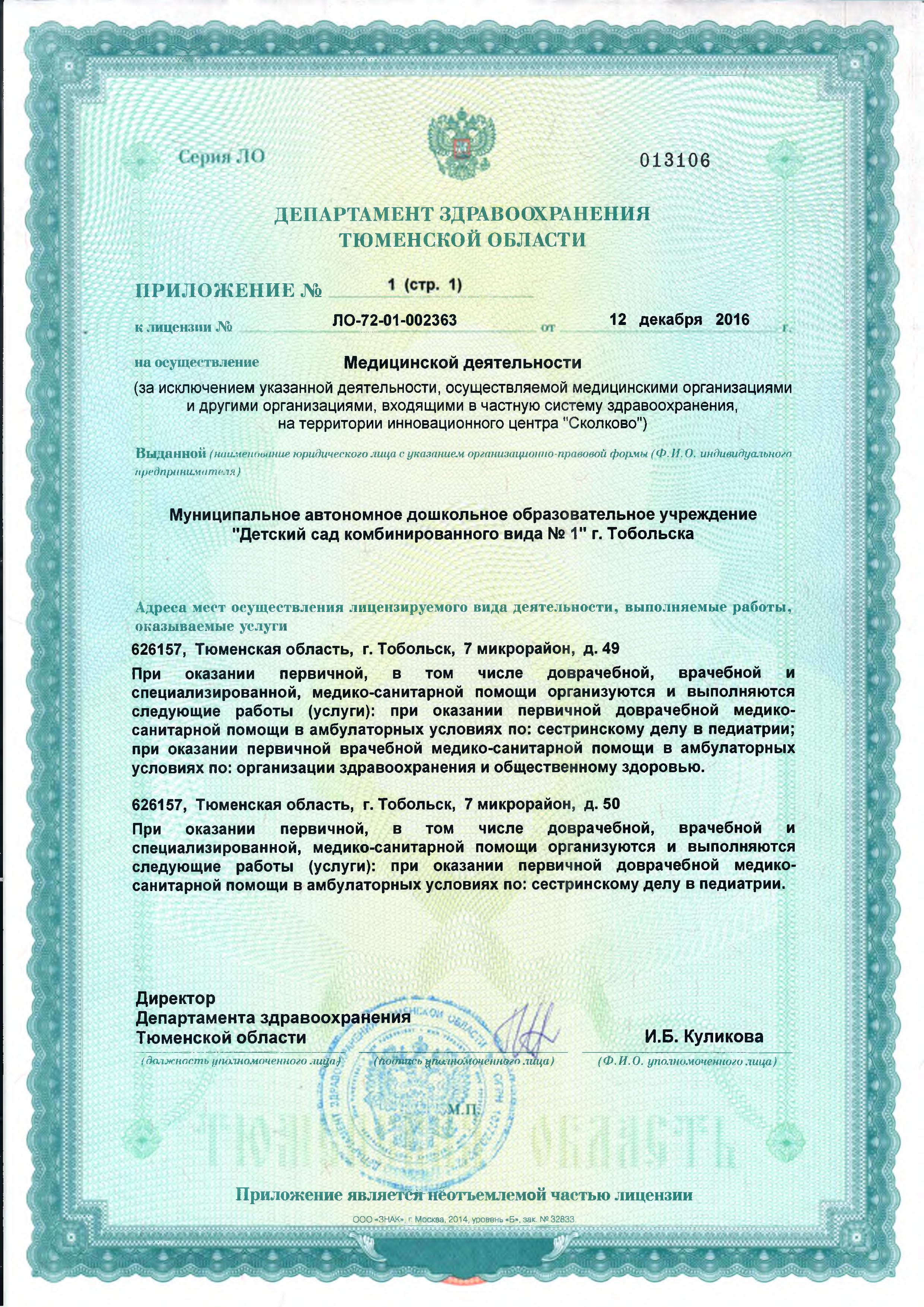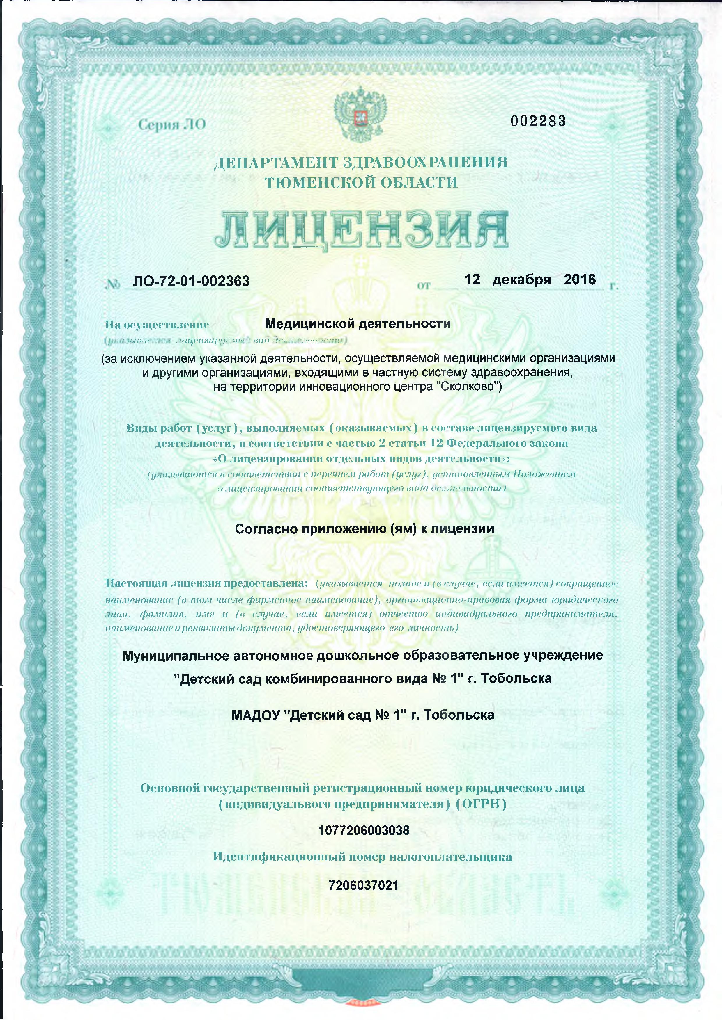 "Детский сад комбинированного вида № 1" г.Тобольска