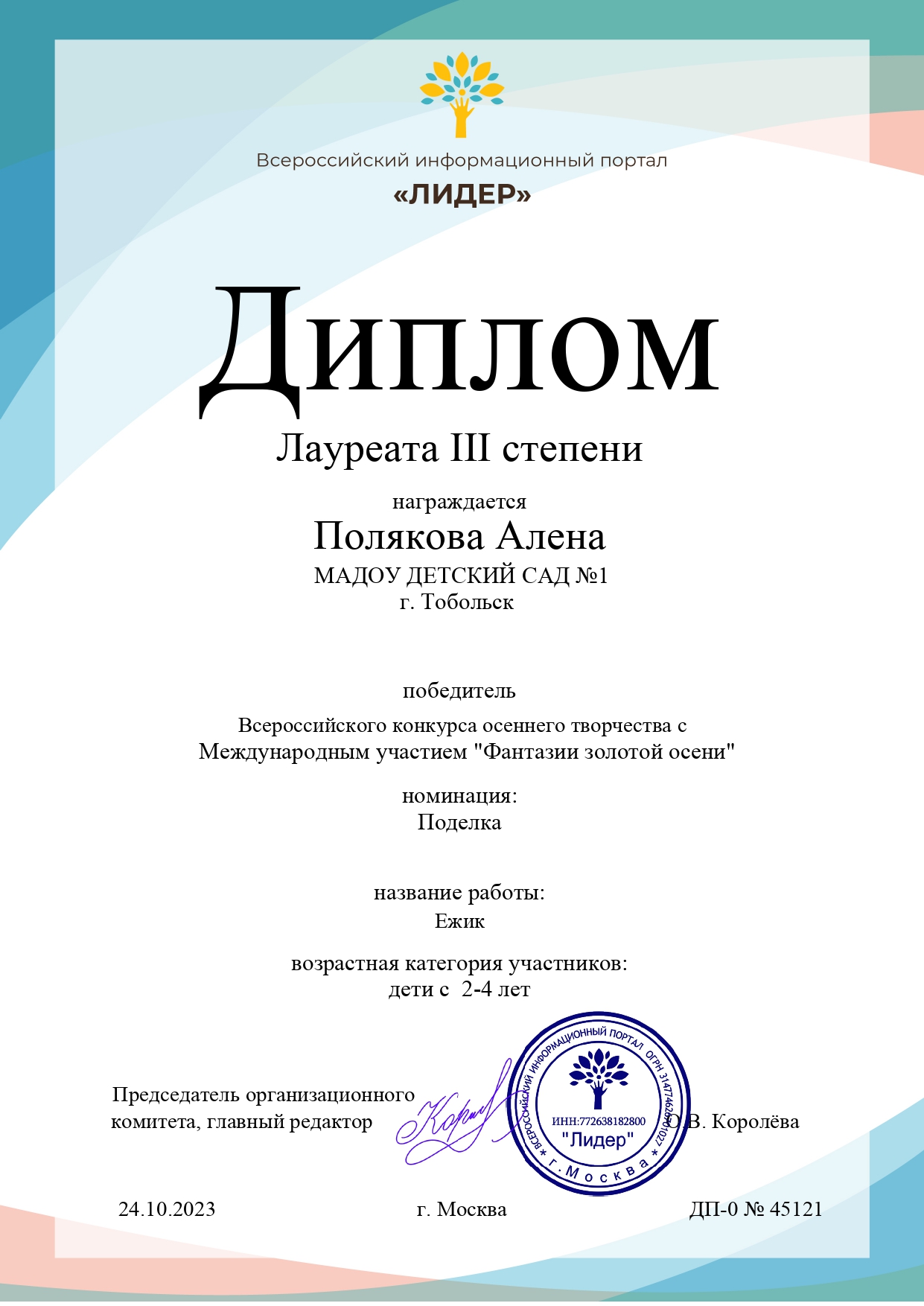 "Детский сад комбинированного вида № 1" г.Тобольска