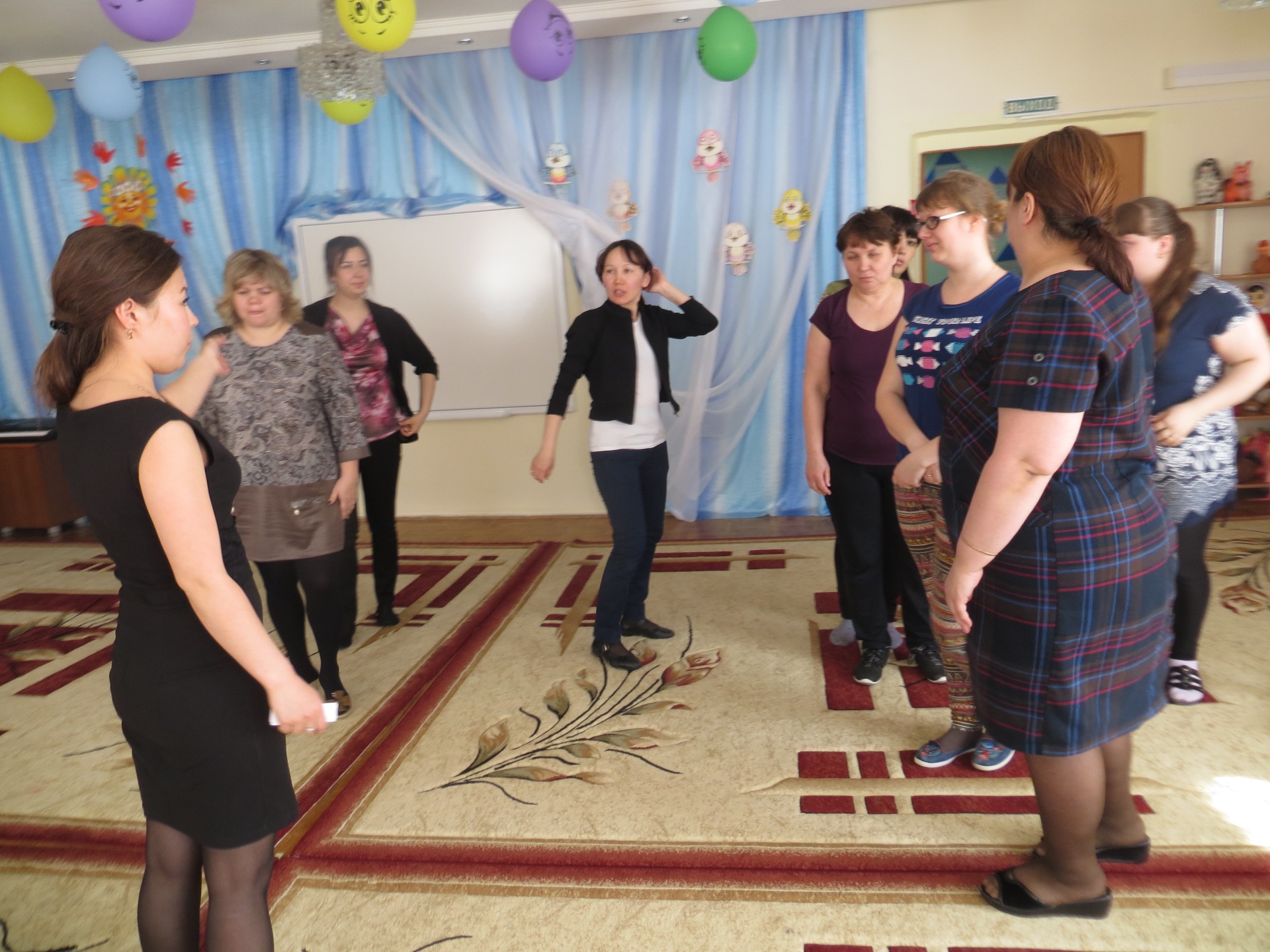 В заключение педагогического совета педагог-психолог Гафурова Л.М. провела динамическую минутку, и экспресс-опрос «Игровой опыт педагогов», что оживило всех педагогов, дало возможность сравнить воспитание предыдущих лет с настоящим. В ходе дискуссии ЛейсанМирхачамовна подвела педагогов к тому, что необходимо грамотно организовывать сюжетно-ролевую игру и тогда она перейдет на более высокий этап развития.Родители увидят и поймут, что все знания ребенок может приобрести не только сидя за столом, но и играя самостоятельно.