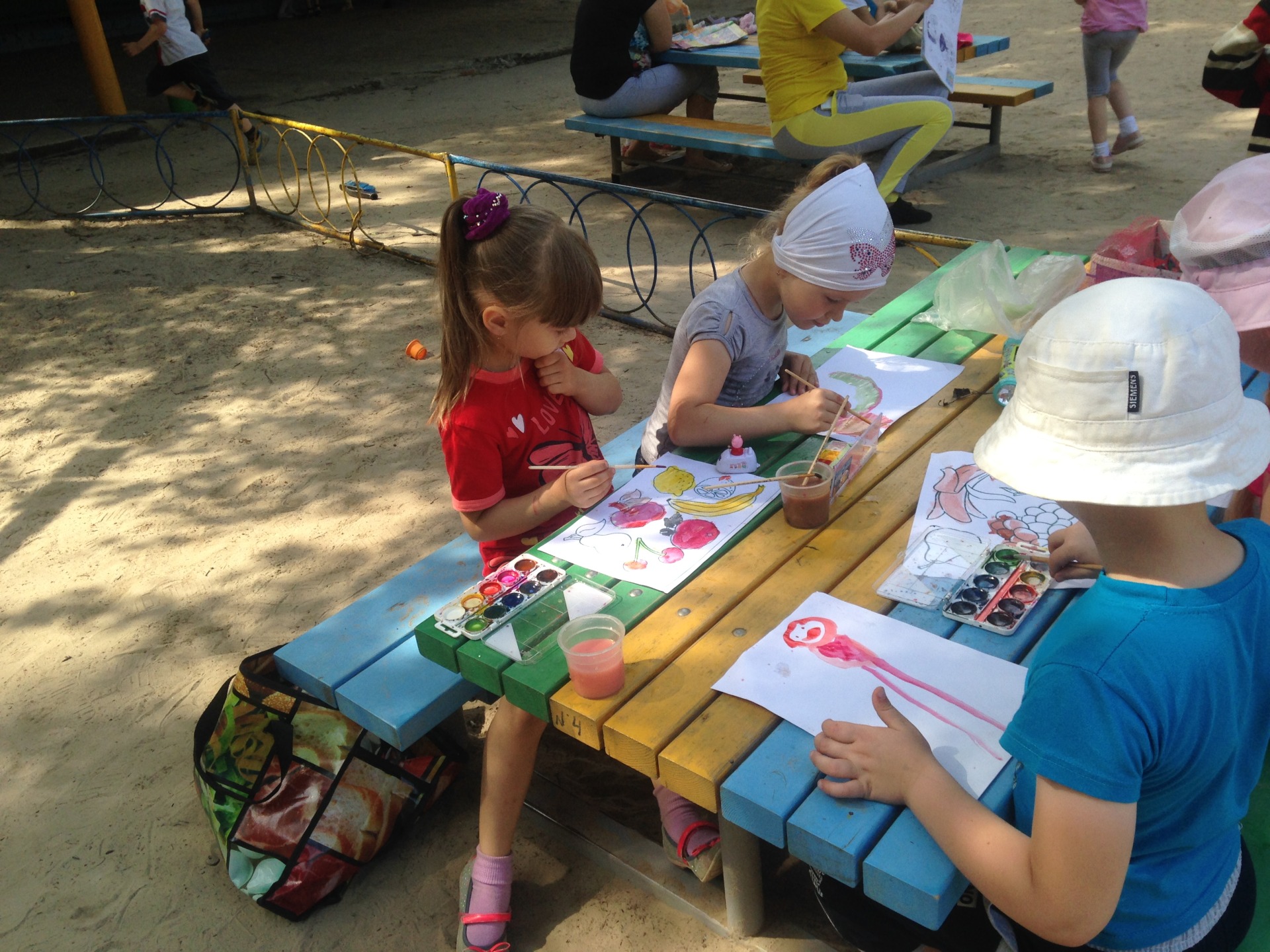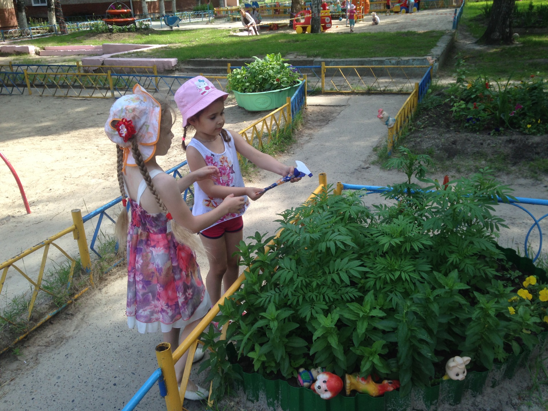 Удобно расположенные на участке, с учетом теневых мест, столы и скамейки, физкультурная площадка, песочницы, всё это необходимо для активной и полноценной жизни детей в летнее время, облегчает организацию воздушного режима.
