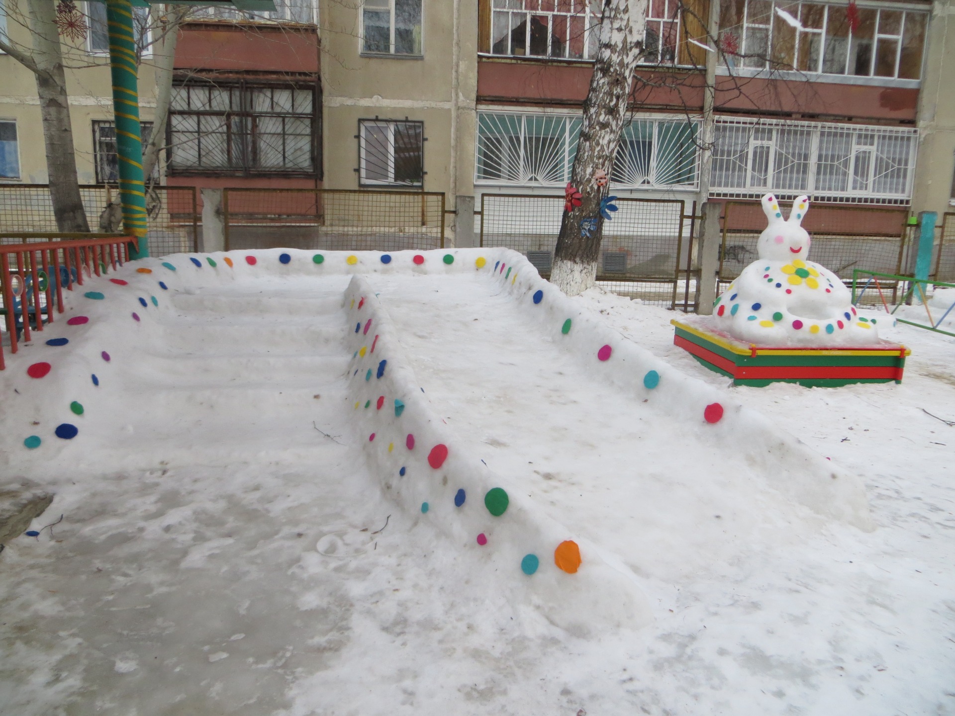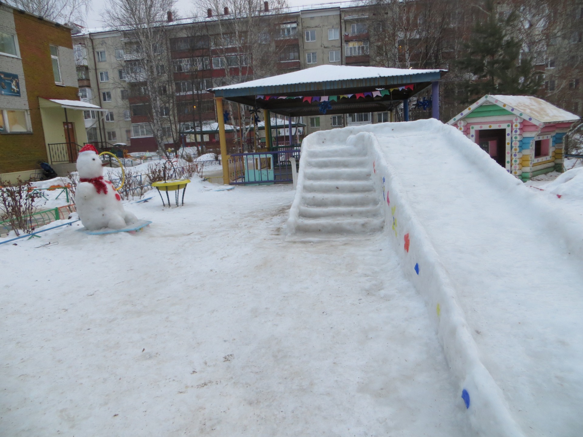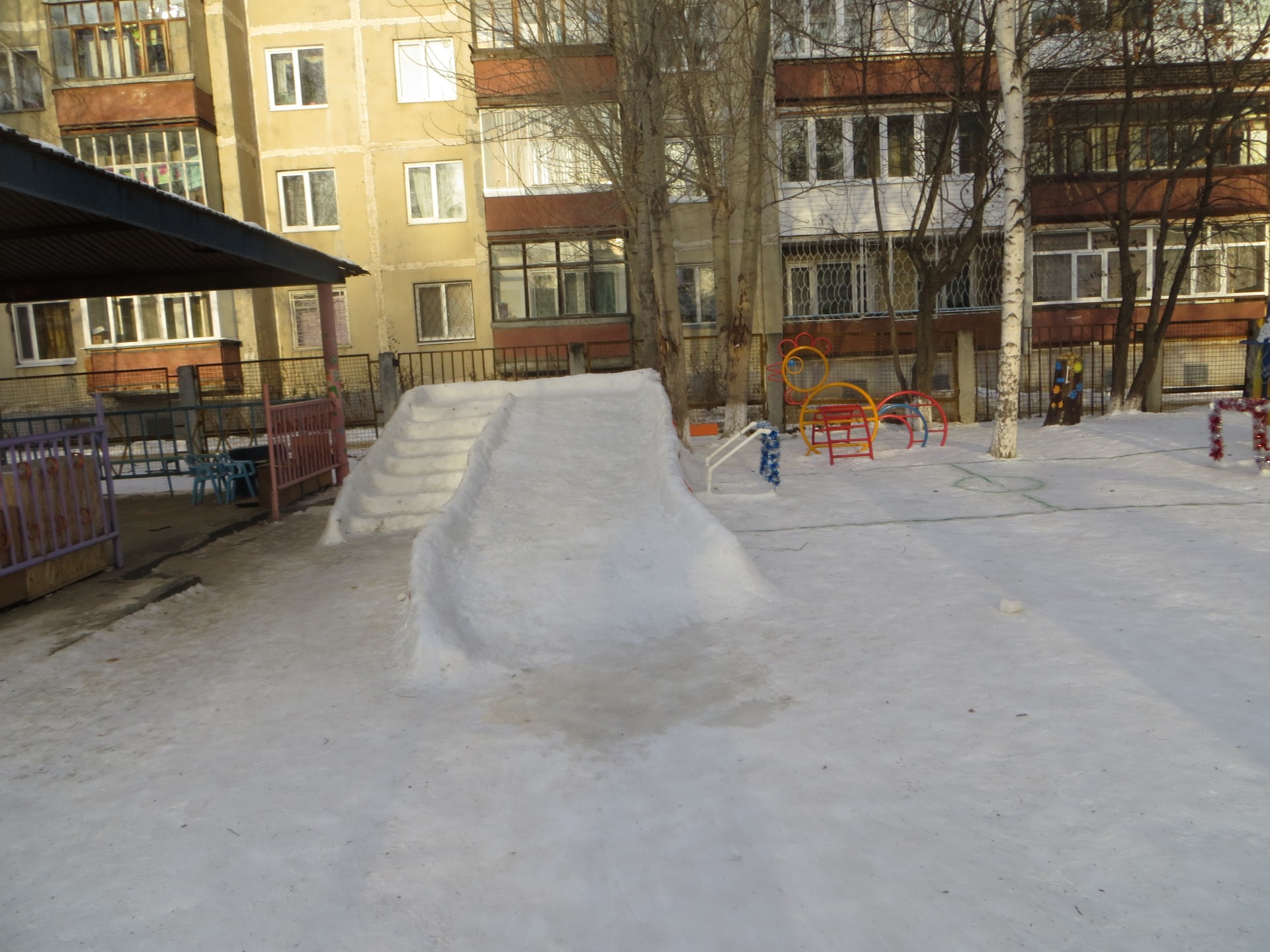 Зимние забавы приносят много радости детишкам. Хотя в начале декабря зима нас не порадовала снегом, но для организации прогулки в зимний период воспитатели совместно с родителями все же создали для детей все необходимые условия: соорудили постройки для развития основных движений - ходьбы, бега, упражнений в равновесии, лазании, прыжках, метании. Все участки разнообразны и эстетически интересно оформлены, задуманные идеи реализованы. Особое внимание уделено обеспечению безопасности и целесообразности построек. Горки на всех участках соответствуют возрастным нормам и требованиям. Дети с любовью относятся к сооружениям, созданным педагогами и их родителями.