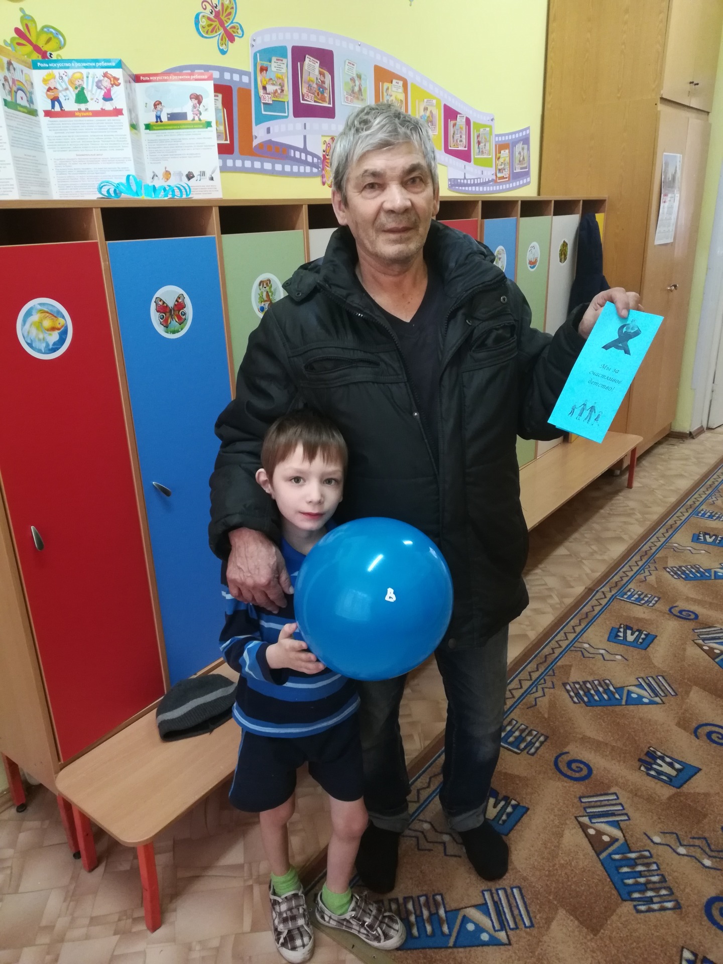 В ходе акции "Синяя лента апреля" дети вручали памятки и буклеты своим родителям и родителям других групп с призывом "Детство без насилия и слез", "Любите нас такими, какие мы есть!", "Дети - солнцев каждой семье!", и запустили воздушные шары в небо с лозунгом «Мы против насилия!».