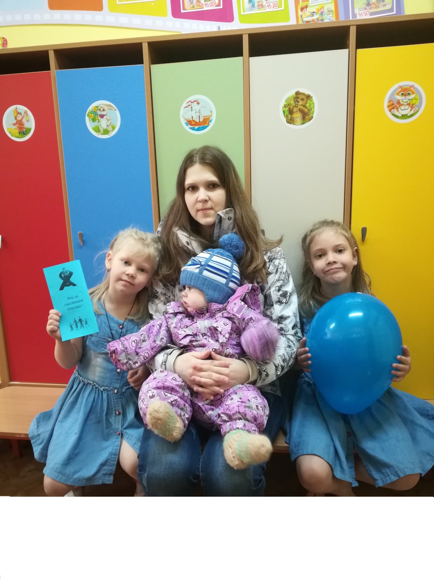 Под знаком «Синей ленты» в группе №9 оздоровительной направленности и в группе №11 компенсирующей направленности проведены мероприятия: конкурс рисунков «Синяя лента», изготовление плакатов «Твори добро», семейные беседы, спортивные мероприятия.
