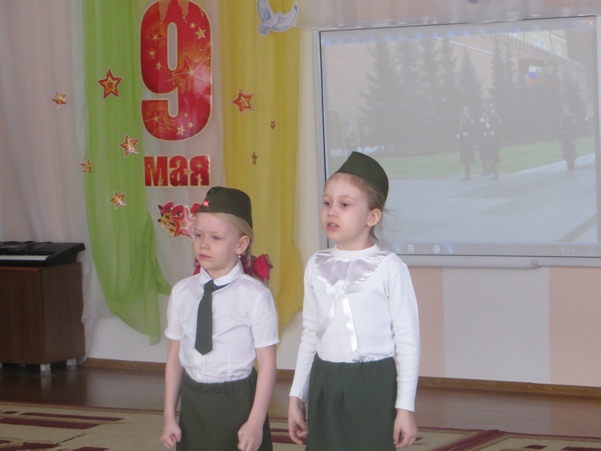 Музыкальные руководители Федотова Л.А., Новопашина В.А., воспитатели групп Сорокина М.В., Смирнова Л.А., Рябикова Г.Ш., Слинкина М.Г., Тамчугова М.П., Абдурахманова П.М.К Боброва с.А., Колычева Т.Д. смогли донести до наших детей понятие, что это за праздник День Победы, почему наша страна отмечает его; отметили, что в каждой семье есть герои, которым мы безмерно благодарны.