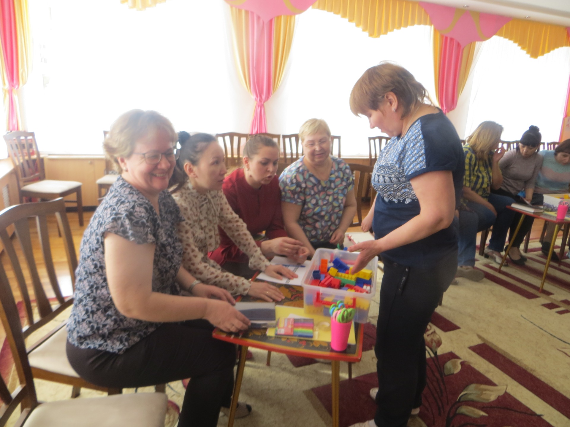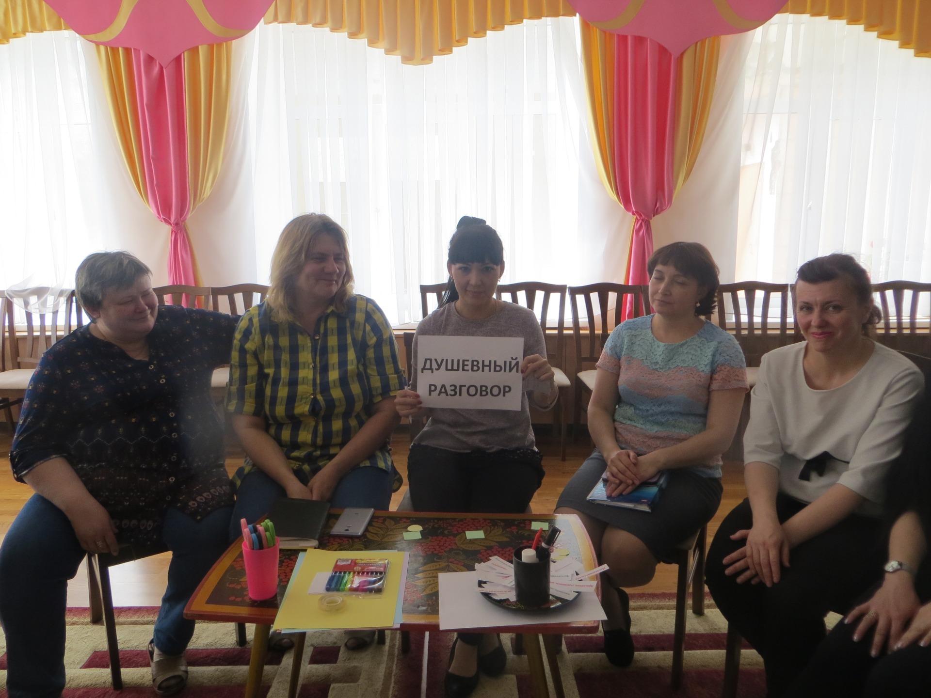 На очередном педагогическом совете, тема которого «Взаимодействие с семьями воспитанников посредством внедрения активных форм сотрудничества», воспитатели Колычева Татьяна Дмитриевна и Москвина Наталья Юрьевна осветили те проблемы, которые существуют во взаимодействии наших педагогов с родителями. Бурундукова Дарья Рашитовна и Слинкина Марина Геннадьевна провели мастер-класс, где постарались проиграть те ситуации, которые помогут в работе педагогам решать возникающие проблемы.