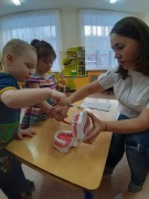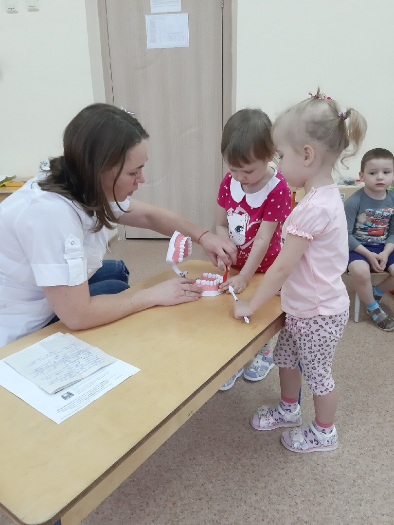 Каждый родитель желает, чтобы у их ребенка зубы были здоровы. Но как это сделать? Для этого мы пригласили к нам в гости нашу родительницу Назаренкову Татьяну Викторовну, которая работает врачом- стоматологом. Она тоже считает, что здоровые зубы дошкольников являются важной составной частью соматического здоровья. Татьяна Викторовна в игровой форме с использованием муляжа зубов показала, как правильно нужно ухаживать за зубами, чистить их для того, чтобы сохранить их здоровыми.