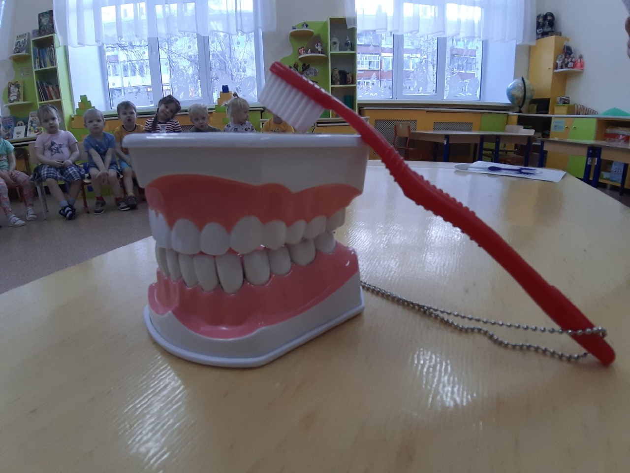 Каждый ребенок смог попробовать почистить зубки на муляже. Сколько эмоций было на их личиках от такой игры.