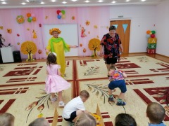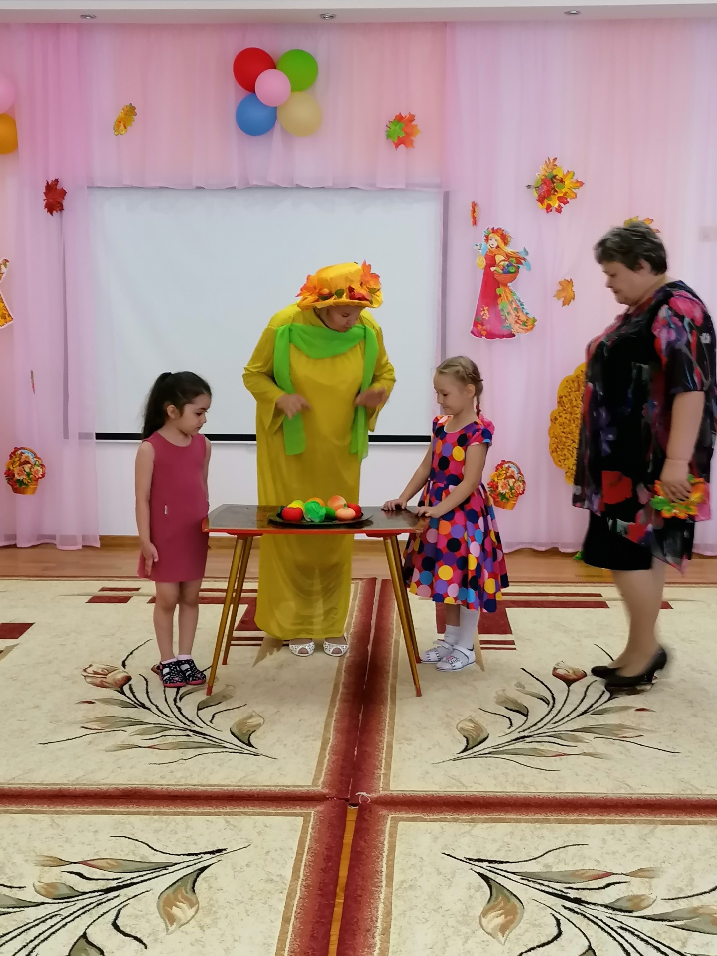 Весело и задорно прошло развлечение «Королева Осень» на старшей группе № 5 «Солнышко». Королева Осень принесла детям необычные песни, танцы, загадки, игры, которые способствовали созданию радостного настроения. Детям не хотелось расставаться с Осенью. Они пригласили ее в гости на следующий год.