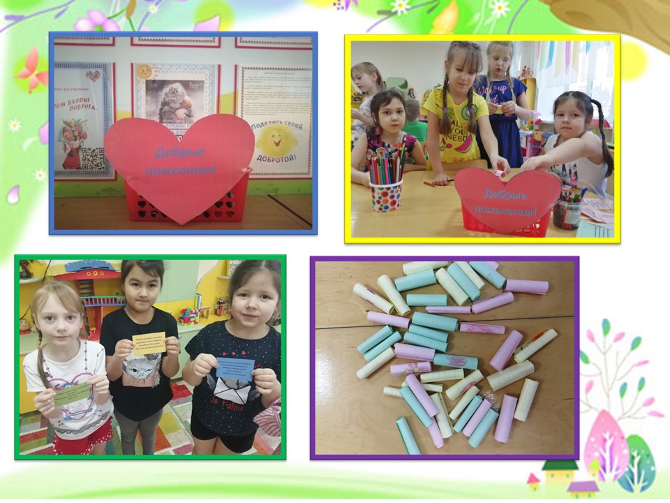 Выстраивая взаимоотношения с родителями, мы ищем новые оригинальные идеи, так как им хочется знать с помощью каких средств идет развитие их детей. Нам с воспитанниками подготовительной группы № 3 «Почемучка» очень понравилось проведение акции «Добрые пожелания», которая прошла рамках тематической недели: «Наши добрые дела» и заинтересовала всех родителей воспитанников.