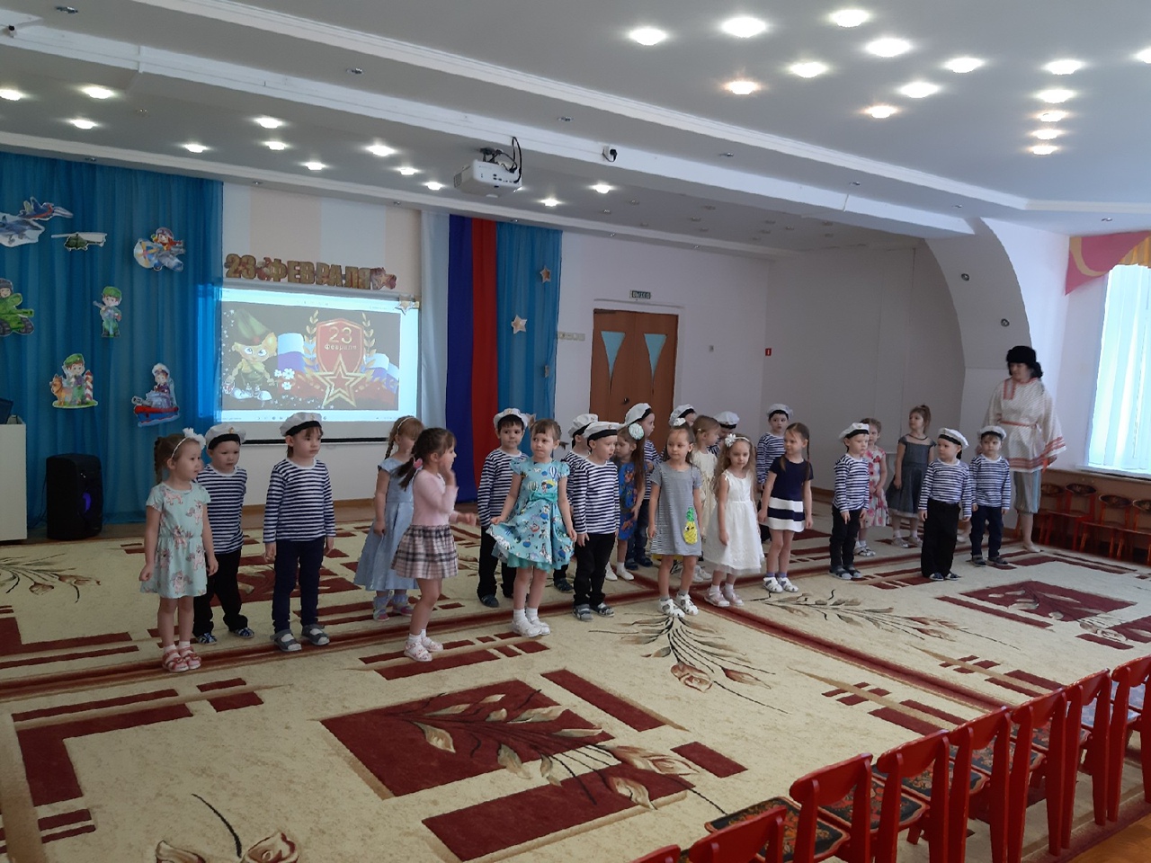 18 февраля на средней группе № 7 «Колокольчик» прошёл спортивно - музыкальный праздник, посвященный «Дню защитника Отечества», где дети пели, танцевали, рассказывали стихи, отгадывали загадки, , а так же встретили гостя из сказки - Емелю, которым вместе показали свою ловкость и мужество в спортивных состязаниях. В конце праздника девочки поздравили мальчиков, вручив им небольшие подарки. Все присутствовавшие на празднике получили массу положительных эмоций!