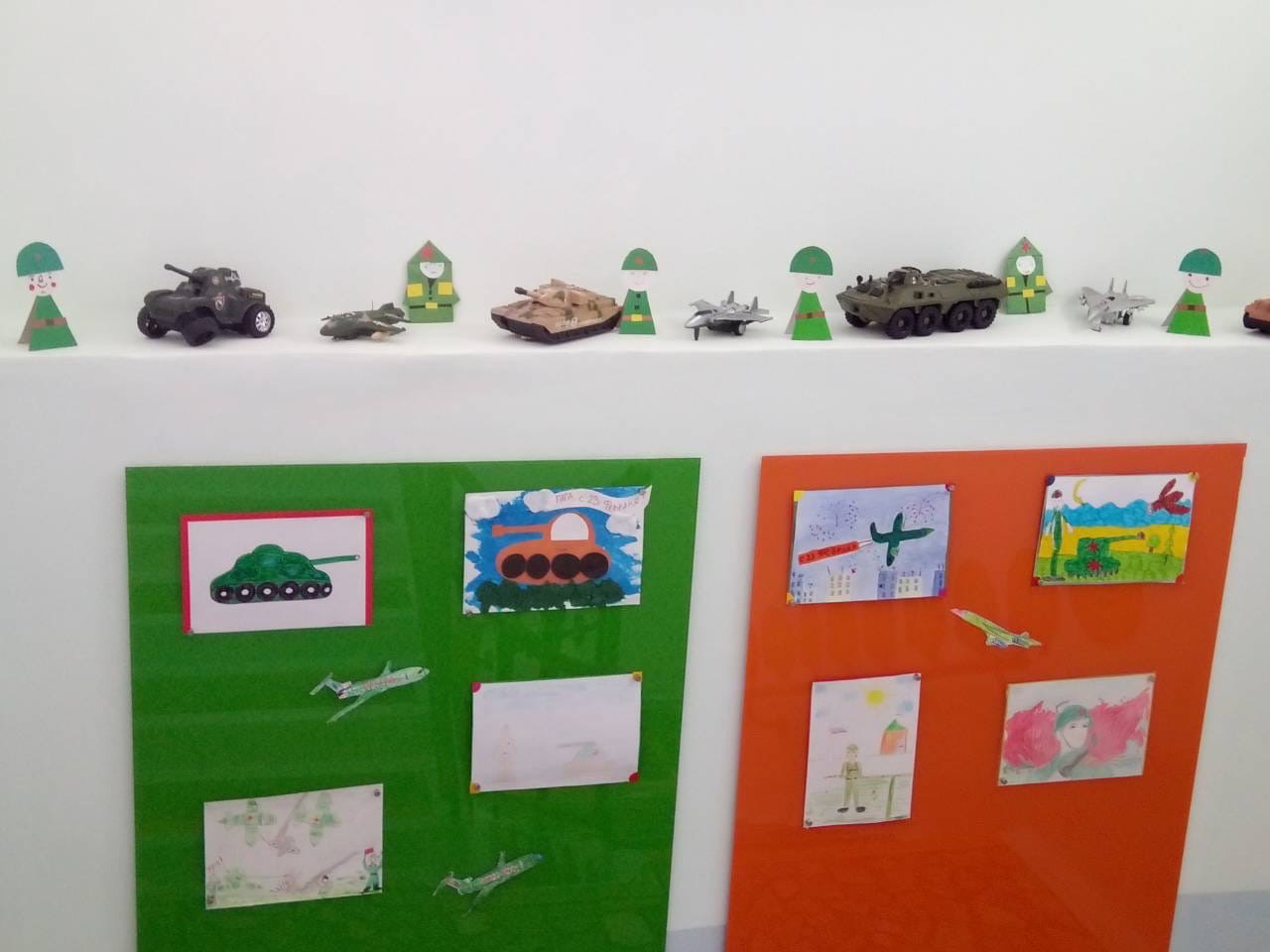 Каждый год в детском саду проводится тематическая неделя к празднику «День защитника Отечества». В преддверии праздника в нашем детском саду по данной теме были созданы фотозоны, оформлены выставки рисунков, собрана коллекция военной техники.