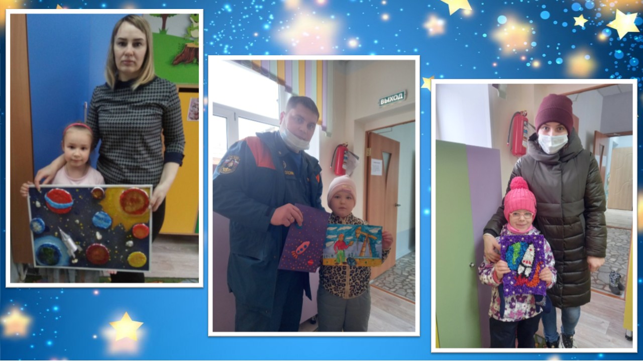 В группах организовали выставку работ на космическую тему, в которой родители с детьми приняли активное участие.