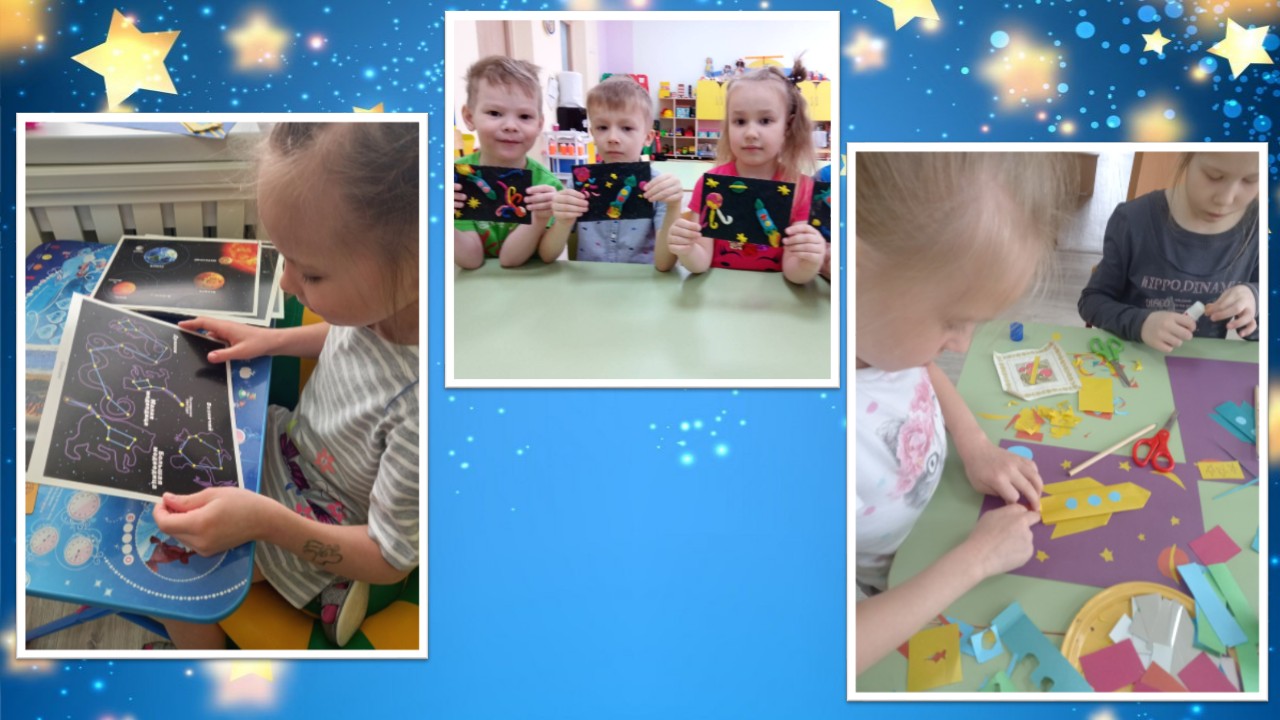 Были организованы различные игры: «Космическое путешествие», «Назови планету», «Небо и земля», «Космодром».