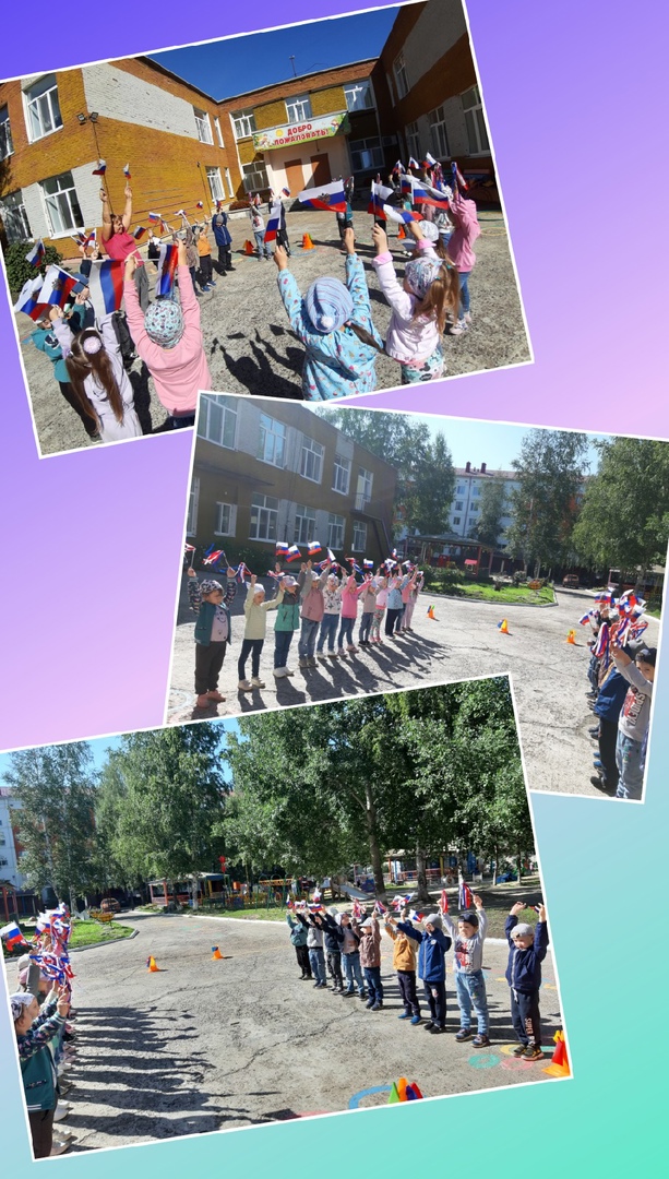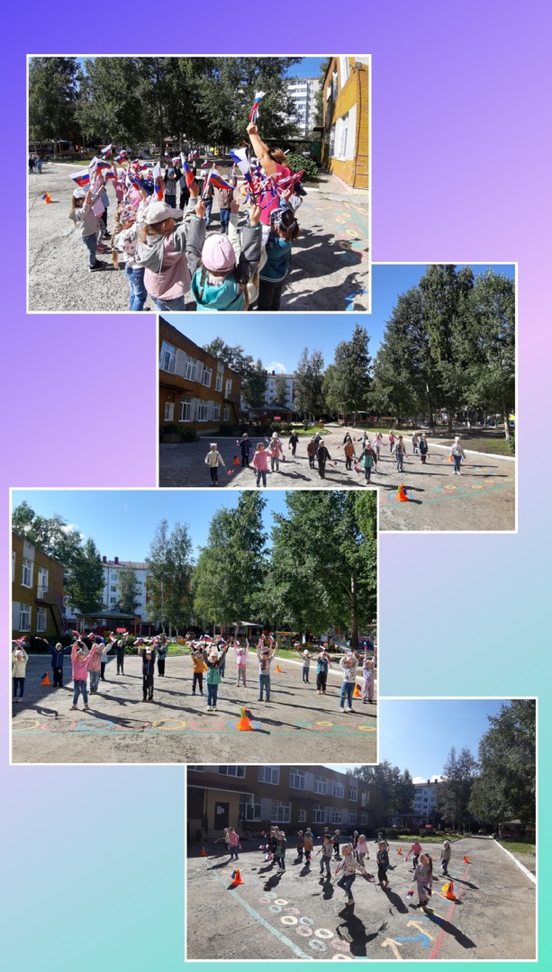 Под песню «Гимн спортсменов Тюменской области» дети выполняли музыкально – ритмические упражнения, а также различные построения и перестроения с флагами России.