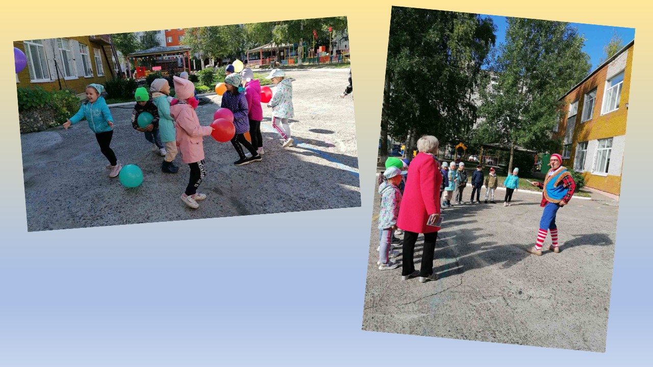 Утро 1 сентября. Звучит задорная музыка. Сегодня необычный день. В нашем детском саду всех детей и родителей встречают сказочные герои - Мальвина и Буратино. Традиционно в этот день проходят развлечения с играми, танцами, песнями. Буратино подарил всем детям воздушные шарики.