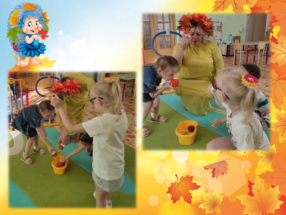 В гости к детям пришла Золотая осень. Она помогла вспомнить и повторить все, что дети знают об осени, объяснила такие понятия как «листопад, золотой дождь и т.д.»,.