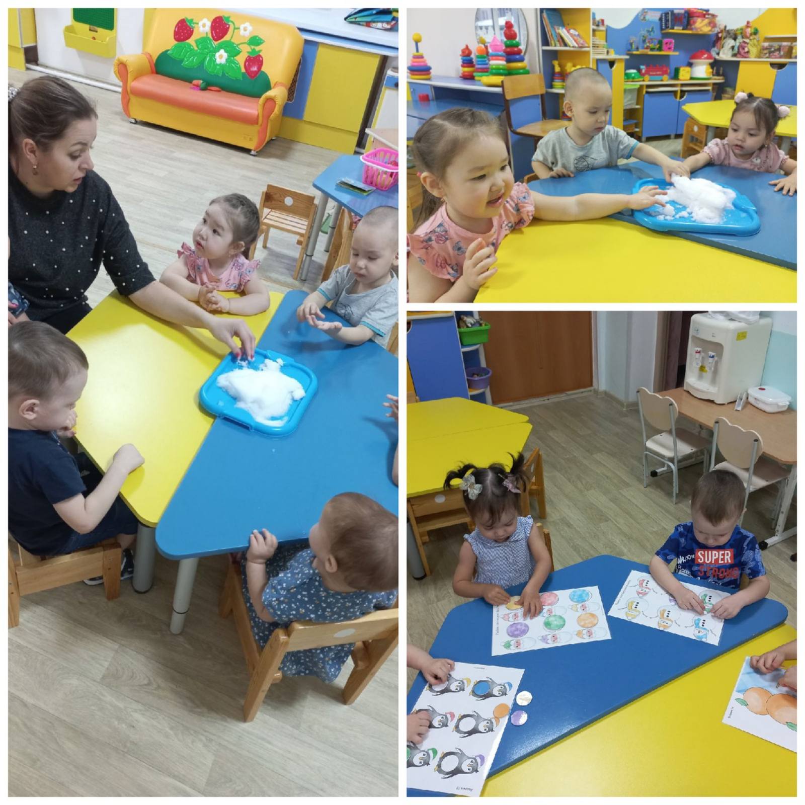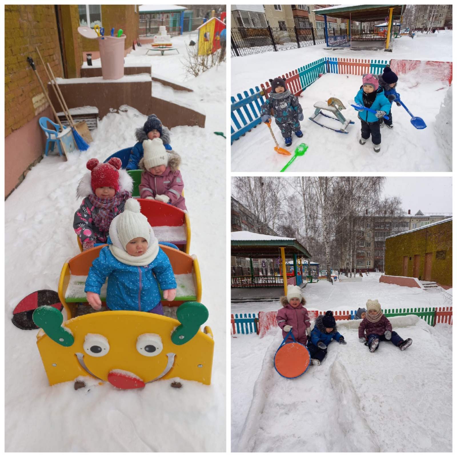 Зима-это чудесное и волшебное время года. Сколько счастья у малышей в глазах при виде снега, восторг и радость трогать его руками, лепить снежки. В рамках проекта «Зимушка, зима» дети раннего возраста группы «Ягодка» знакомятся с признаками зимы, алгоритмом одевания в зимнее время года. Так же с детьми проводились опыты со снегом и знакомство с его свойствами, игры на липучках «Зима», подвижные игры: «Зайка серенький», «Лиса и зайцы»; пальчиковые игры «Как на горке снег, снег», «Снежинка» и др. На прогулке ребятишкам очень нравится кататься с горки, собирать снег лопатками.