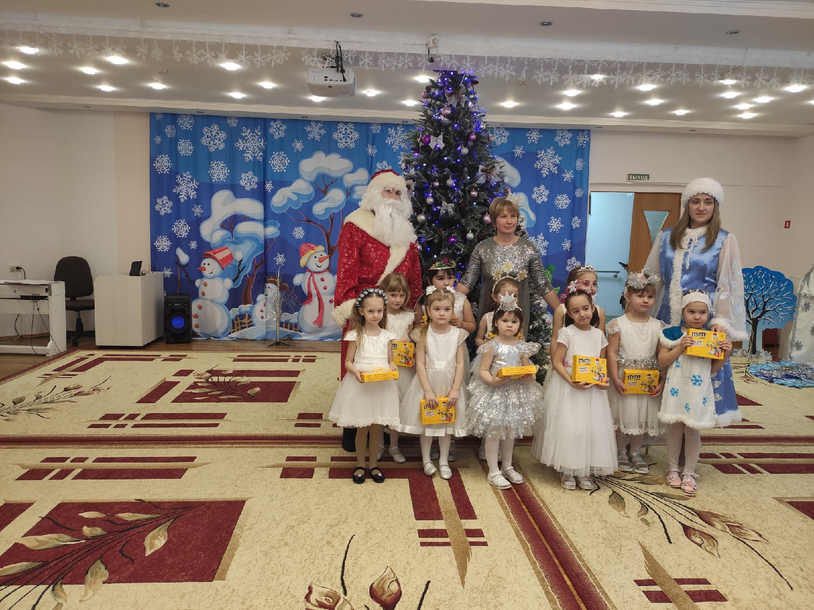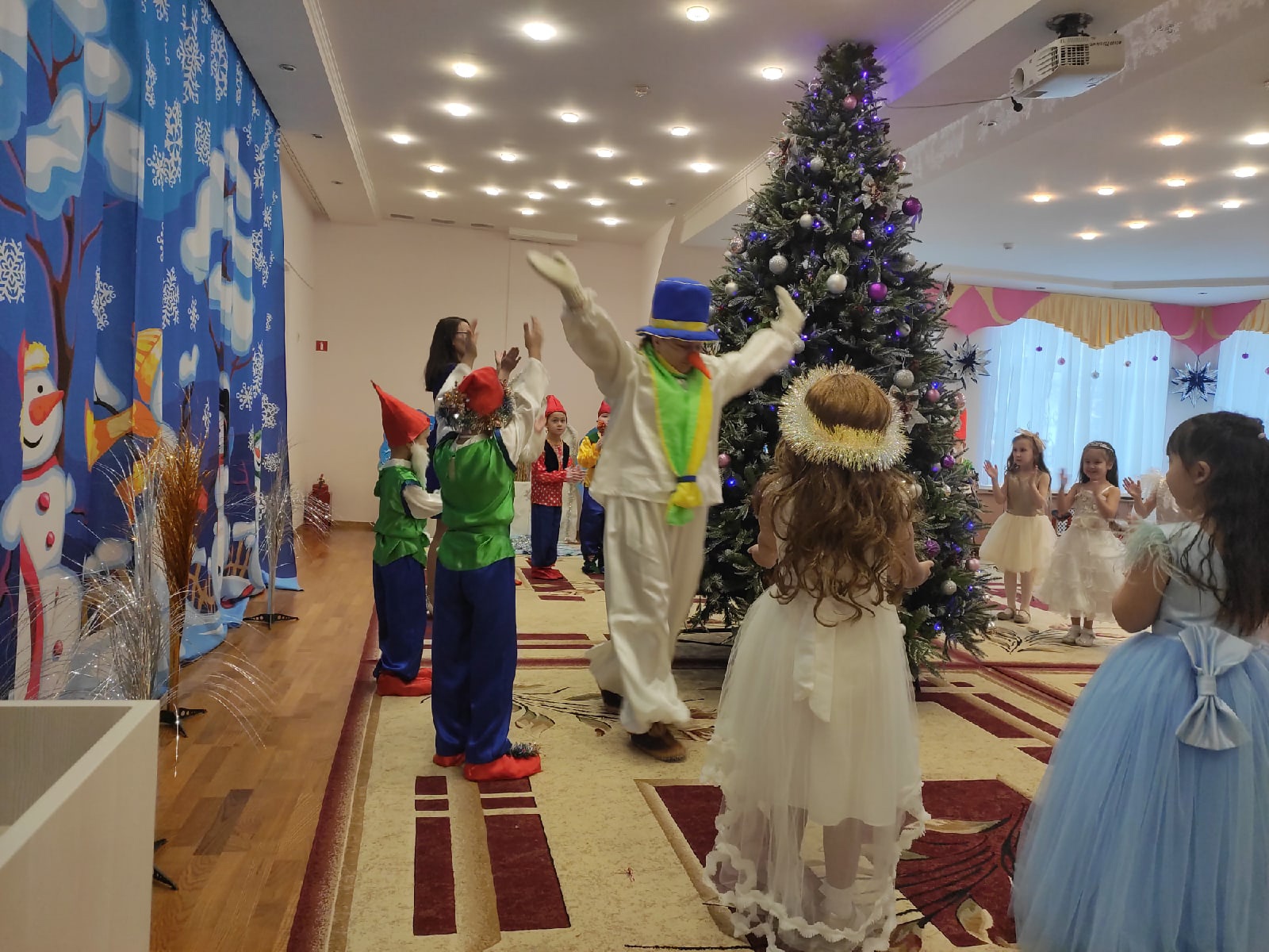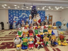 В детском саду начинаются новогодние праздники! К детям приходят Дед Мороз со Снегурочкой, веселый Снеговик, озорная Баба Яга водить хороводы, играть в веселые игры, и, конечно, подарить вкусные подарки. Ребята очень ждали праздника, выучили стихи и танцы, приготовили карнавальные костюмы. Желаем всем веселого и счастливого нового года!