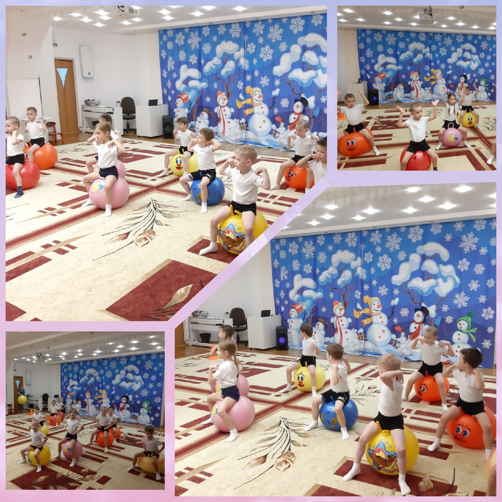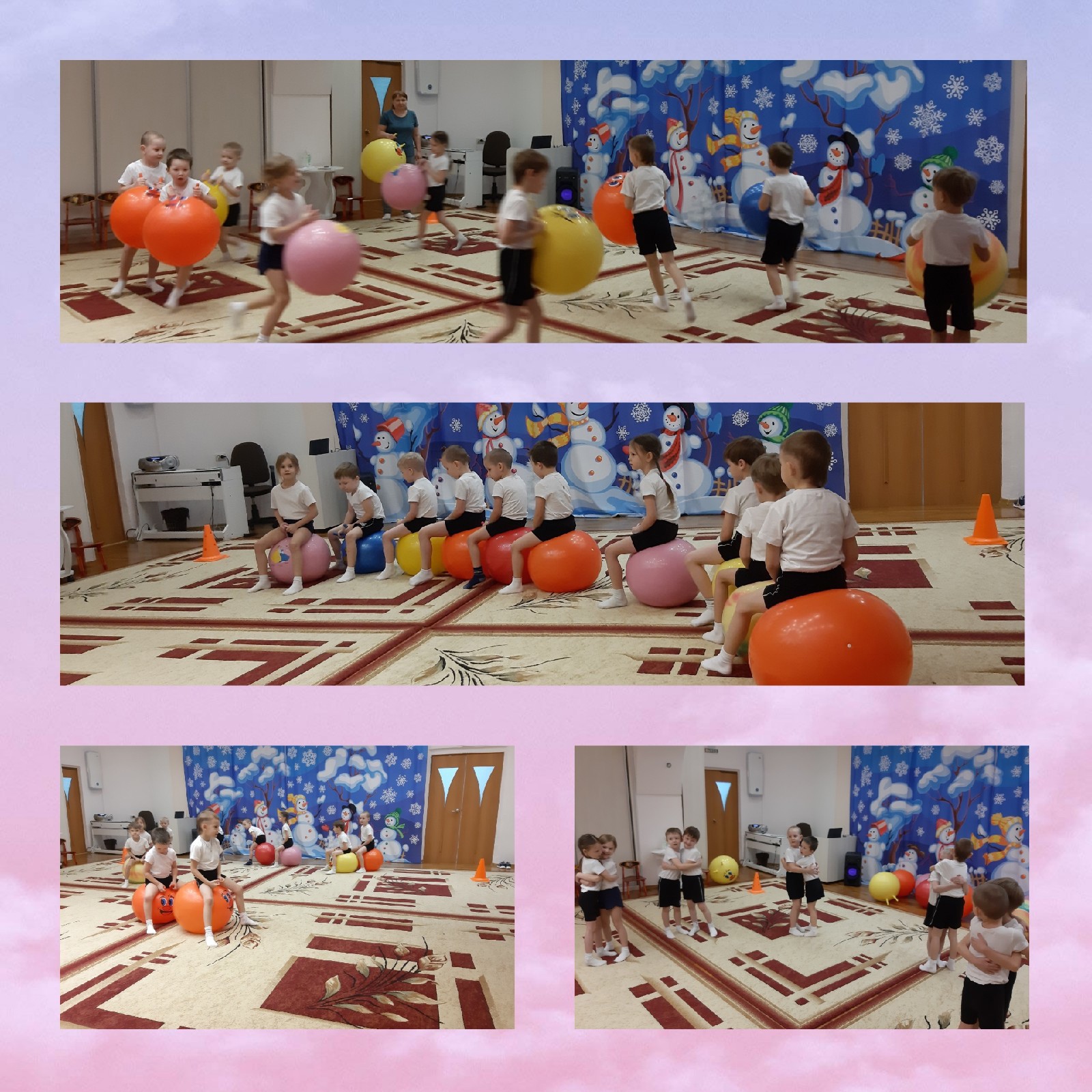 Дети старшей группы «Колокольчик» на занятии кружка «Здоровячок» совершили увлекательное путешествие на фитболах в «Страну здоровья». Закрепление двигательных умений и навыков на фитболе проводилось в игровой и соревновательной форме Путешествие началось с оздоровительной разминки. В «Стране здоровья» дети танцевали на мячах, выполняли упражнение на коррекцию осанки, закончилось путешествие играми и эстафетами.