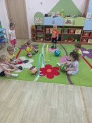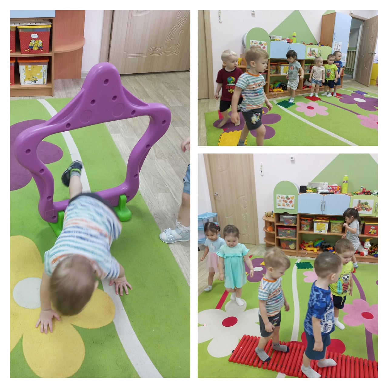 В рамках реализации проекта «Малыши крепыши» с воспитанниками группы раннего возраста «Ягодка» были проведены различные спортивные и профилактические игры и занятия. Каждое утро в группе организуются веселые зарядки для поднятия настроения: «Ласковая киска», «Веселые гуси», «Звонкие погремушки», «Цирковые медвежата». При проведении физических упражнений учимся проползать по лабиринтам на четвереньках, прокатывать мяч друг другу, перешагивать и перепрыгивать через ручеек. Очень нравится нашим воспитанникам ходить по развивающим тактильным дорожкам, которые предупреждают развитие плоскостопия. Веселое музыкальное сопровождение и предметы, с которыми дети выполняют упражнения созданию высокий эмоциональный подъем на целый день.