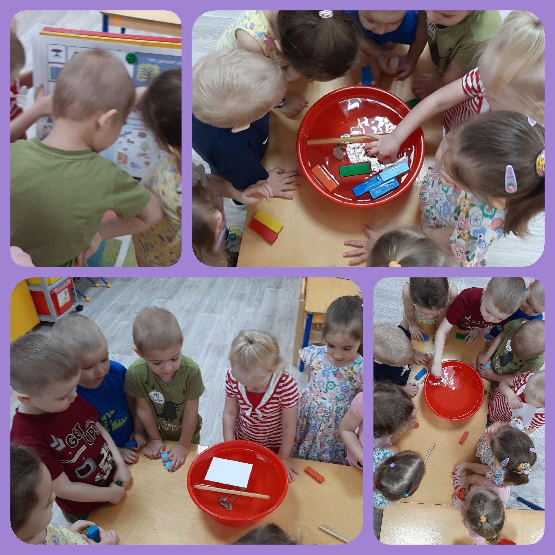 Дети очень любят исследовать и экспериментировать, особенно в возрасте «почемучек». Так было и у нас во второй младшей группе «Почемучки». К ребятам в гости пришли любимые игрушки – малышки, которые хотели покататься на машинках. Перед детьми встал вопрос: «Из чего сделать машинки для гостей?». Материал был разнообразный: камень, железо, бумага, дерево. Проведя эксперимент: «Тонет – не тонет», поочередно опуская в воду бумажную салфетку, каменный цветок, железные ключи, решили машинки сделать из дерева. В воде дерево не утонуло, чем и привлекло внимание детей. При постройке машинок из дерева закрепили навык постройки транспортных средств, используя кирпичи, кубики, пластины.
