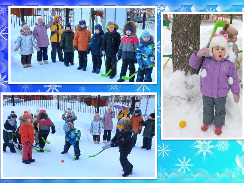 В поддержку наших спортсменов между группами прошли соревнования по хоккею с шайбой.
