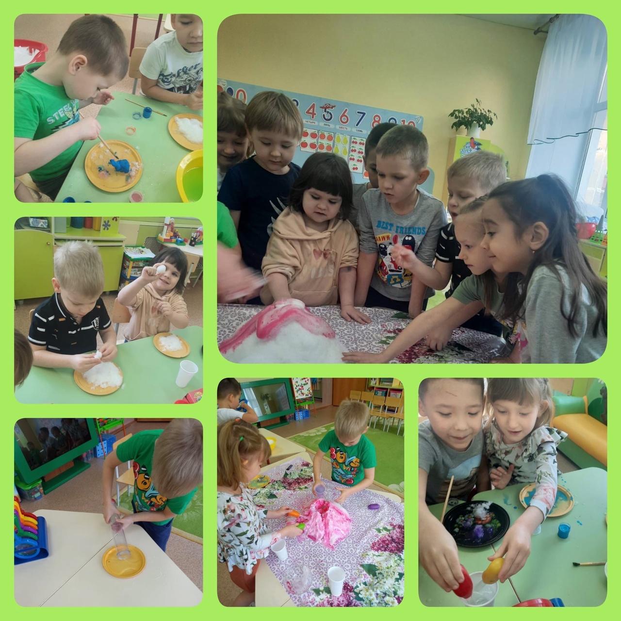 Они убедились на опыте, что снег превращаясь в воду занимает меньше места и принимает форму сосуда; что на вид снег чистый, а при таянии в нем находятся частицы грязи и сделали для себя выводы; лепили фигурки и уточняли почему снег рыхлый тает быстрее чем спрессованный; раскрашивали снег краской и высказывались, где это изобретение можно использовать.