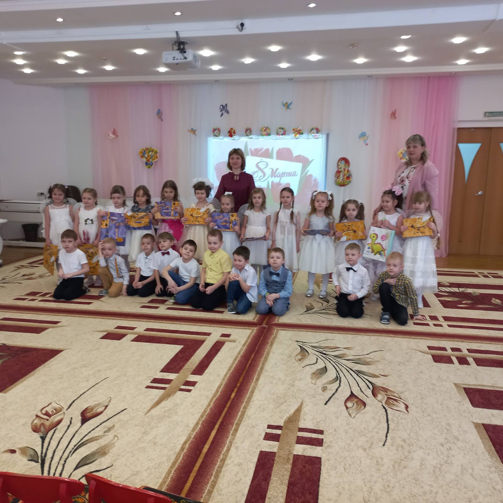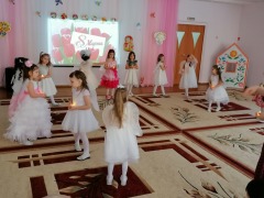 Ребята из группы «Колокольчик» поздравили всех женщин с Международным женским днем. На празднике они пели веселые песни о маме и о весне, рассказывали стихи. В гости к детям приходила Баба Яга, она требовала, что бы её ребята повеселили. Дети поиграли с ней в веселые, подвижные музыкальные игры и она в хорошем настроении отправилась в свой лес. Затем ребят навестила красавица Весна, дети исполнили для нее танец с цветами и спели веселую песню про весну. Девочки в костюмах ангелов с горящими свечками исполнили душевный танец для мам. А в конце мероприятия мальчики из группы «Колокольчик» подарили девочкам подарки и поздравили их с праздником 8 марта.