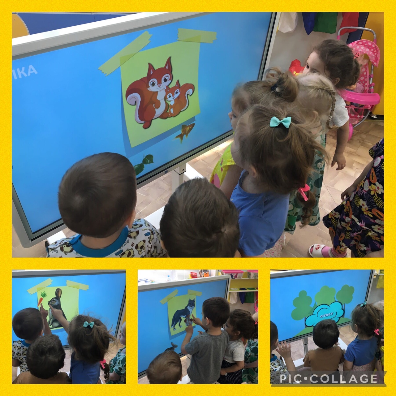 Используя интерактивные игры с детьми, можно закрепить абсолютно любую пройденную тему. Так, например, малыши группы № 13 «Колобок» отправились в путешествие в лес, где с помощью интерактивной панели отгадывали загадки, закрепили названия диких животных, их повадки, и то, чем они питаются. Малышам очень понравилась данная игра, они с огромным увлечением прослушивали загадки, не торопились с ответом, были внимательны.