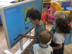 Через игры на интерактивной панели ребята легче усваивают полезную информацию, формируется умение ориентироваться на плоскости и в пространстве, тренируется эффективность, внимание и память. Развивается мелкая моторика, формируется тончайшая координация движений глаз.