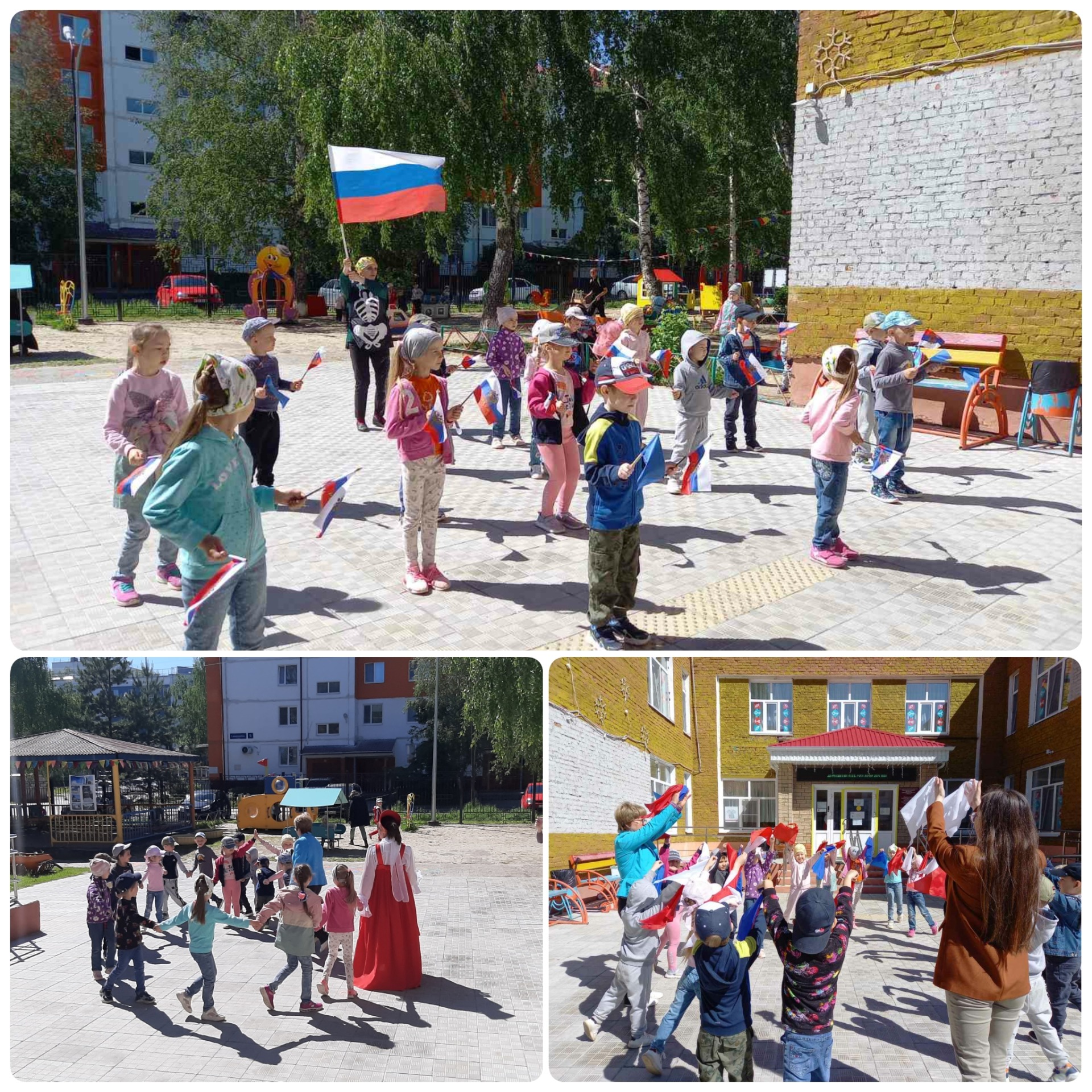 В МАДОУ «Детский сад №1» в преддверии празднования Дня России прошел музыкально-спортивный праздник «Россия – Родина моя!». Ребята пели песни о России, исполняли народные танцы и весело играли в русские народные игры. На праздник к детям приходили сказочные персонажи – Василиса Премудрая, Баба – Яга и Кощей Бессмертный. Дети получили большой заряд энергии и хорошего настроения. Завершился праздник зажигательным флэш-мобом «Я, ты, он, она – вместе целая страна!».