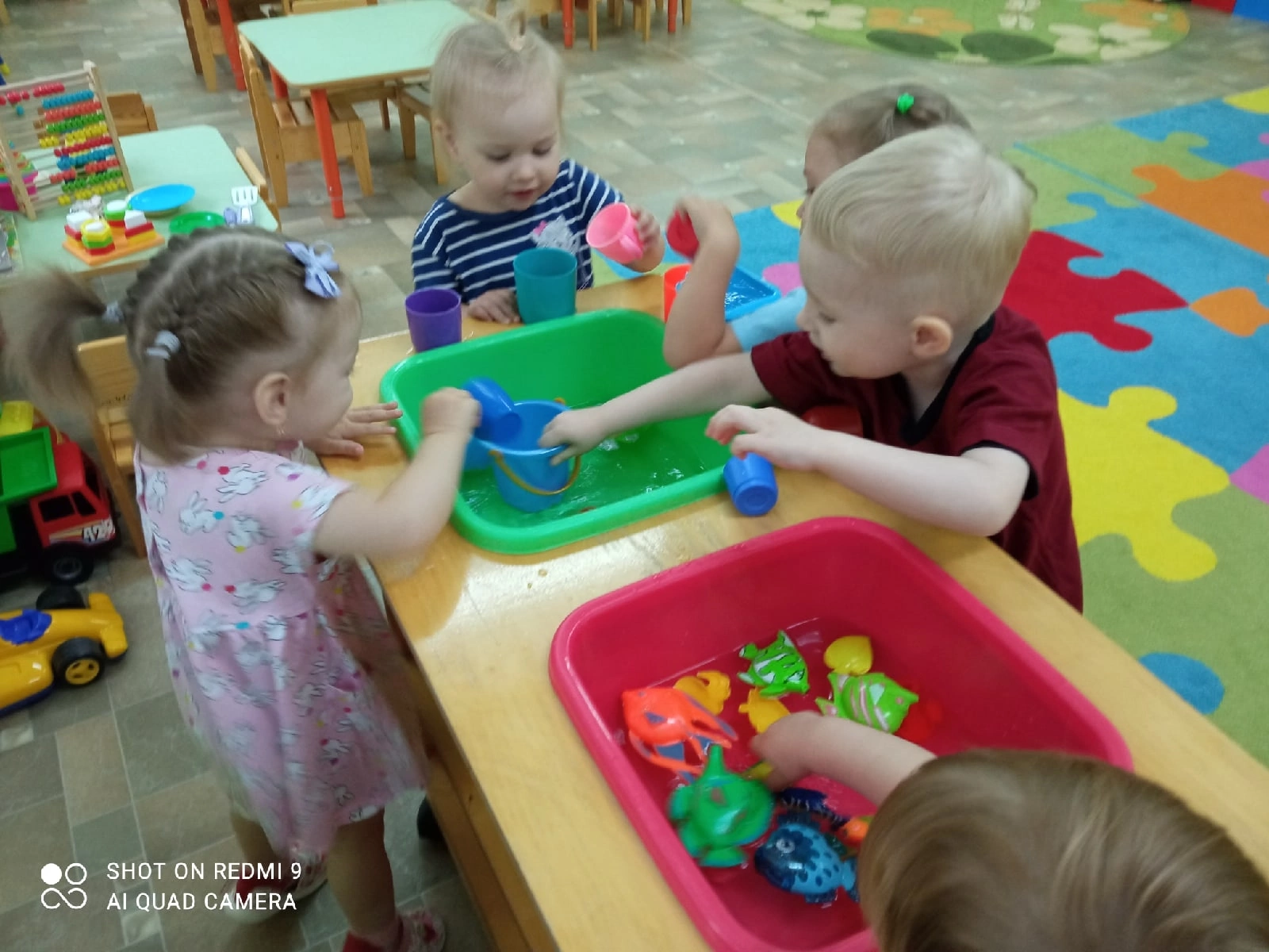 Есть единственное средство, которое успокаивает ребенка и отвлекает его внимание на долгое время плеск воды, переливание воды, игры с водой и песком. В период адаптации мы используем игры с водой и песком для здоровья детей. Обратите внимание на то, как детям нравится трогать песок, пересыпать его совочком, с какой радостью они ловят рыбок и плещутся в воде. Это благотворно влияет на психику ребенка, успокаивает, создает умиротворенное настроение, гасит негативные эмоции. А для нас воспитателей - это самое главное в период адаптации на младших группах.
