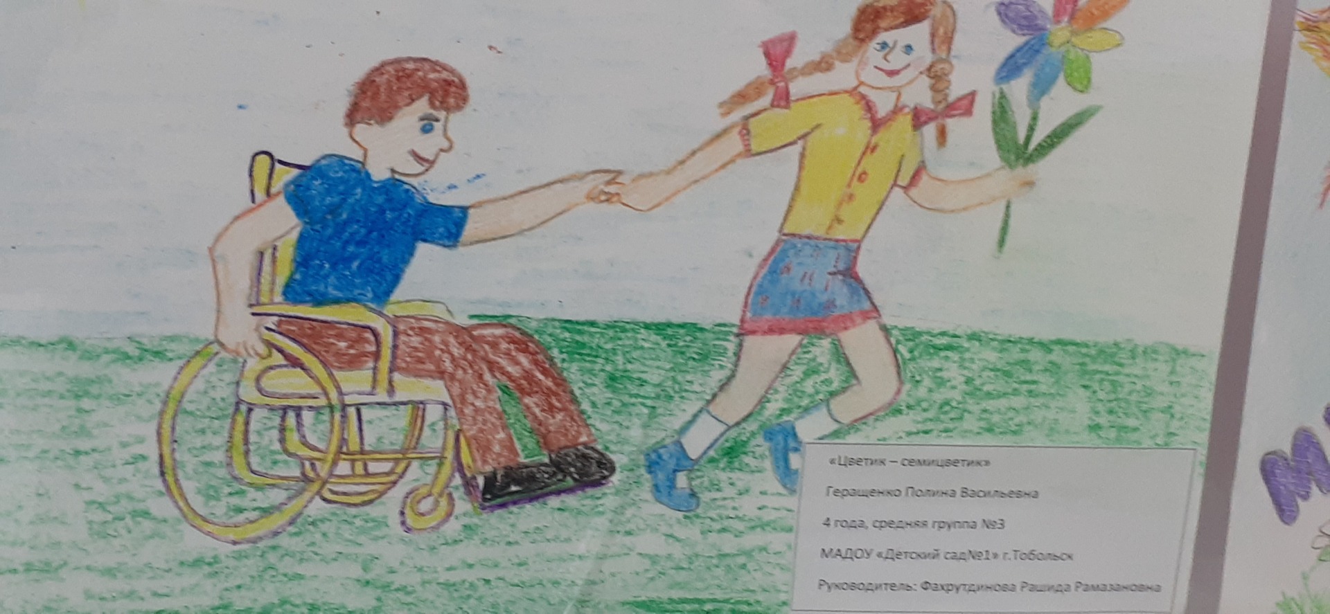Красочные рисунки дают нам понять, что мы все должны держаться вместе, считаться с мнением друг друга, заботиться друг о друге, дарить улыбки, добрые слова и развивать чувство симпатии к детям с инвалидностью.