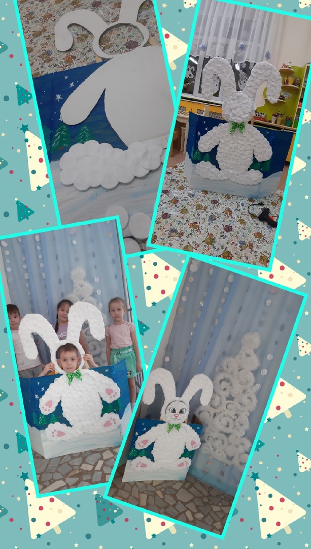 С детьми подготовительной группы №7 «Колокольчик» с радостью решили создать новогоднюю атмосферу и оформили фотозону в коридоре. Для оформления фотозоны понадобились обычные картонные коробки, гуашь, кисточки, клей пистолет и немного фантазии. Ребята вместе с родителями могут подойти полюбоваться и сфотографироваться.