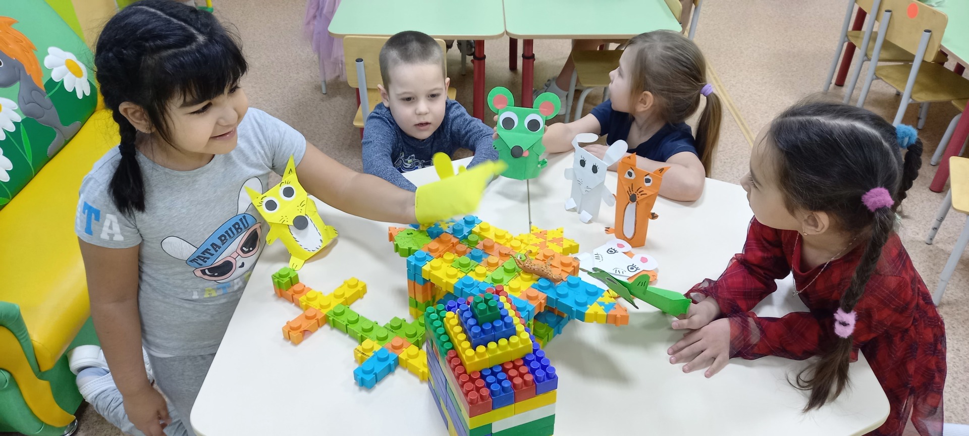 А герои из сказок поселились в построенном доме и были увлечены придуманным общим сюжетом. Было весело и интересно!