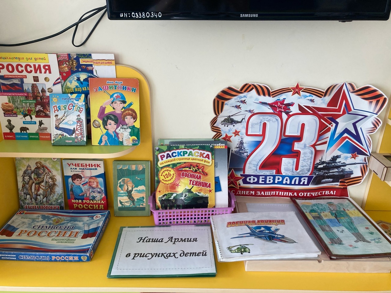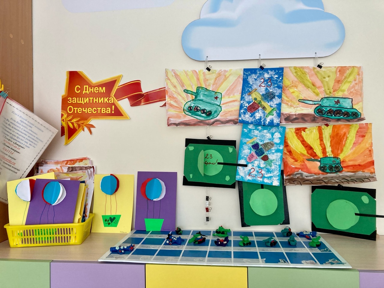 В рамках проекта с участием детей и родителей были организованы выставки поделок из бросового материала «Военная техника», «Сила России» - игрушки из дома, на военную тему. Приняли участие во внутриучрежденческом конкурсе рисунков «Мое Отечество – Россия», в акциях «Письмо солдату», «Стена героев».