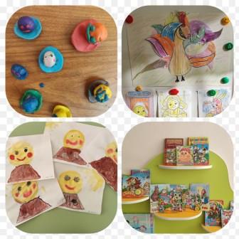 Дети лепили и рисовали героев русских народных сказок, проводили игры-драматизации, играли в настольные, словесные, подвижные и сюжетно-ролевые игры по сказкам, используя театральных кукол, шапочки, костюмы и другой реквизит.