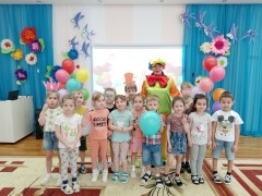 Весело и шумно в нашем детском саду прошел праздник ко Дню Смеха. К ребятам приходил клоун Бантик, с которым дети отправились по разным станциям. Они играли в веселые подвижные игры, отгадывали загадки, пели песню на зверином языке, танцевали веселые танцы. Клоун Бантик оказался очень веселым, добрым и в конце праздника угостил ребят вкусным сюрпризом.
