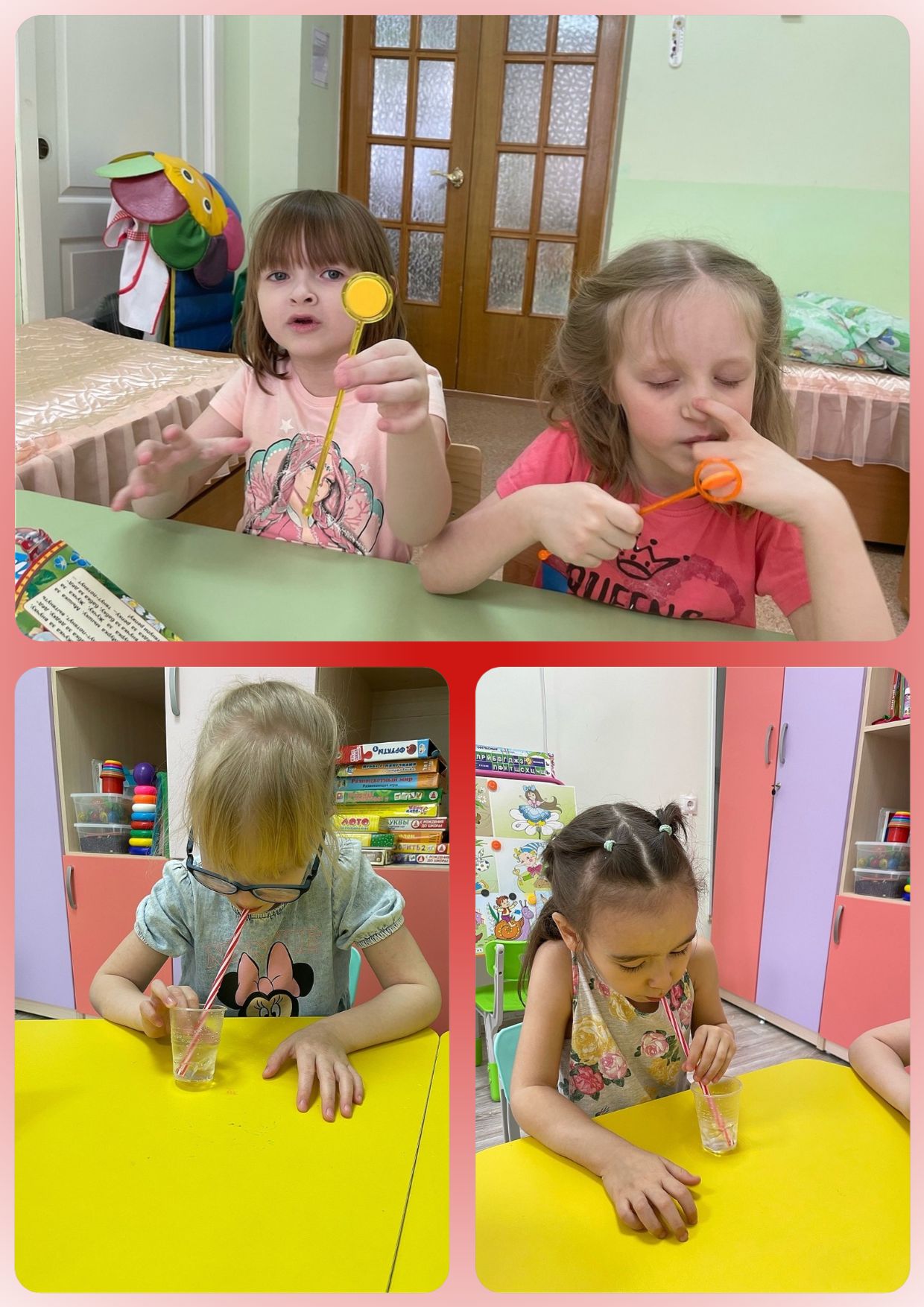 «Пузырьки». Ребенку дают стакан с водой и трубочку. Он глубоко вдыхает и через трубочку медленно выпускает воздух в воду, чтобы образовывались пузырьки.