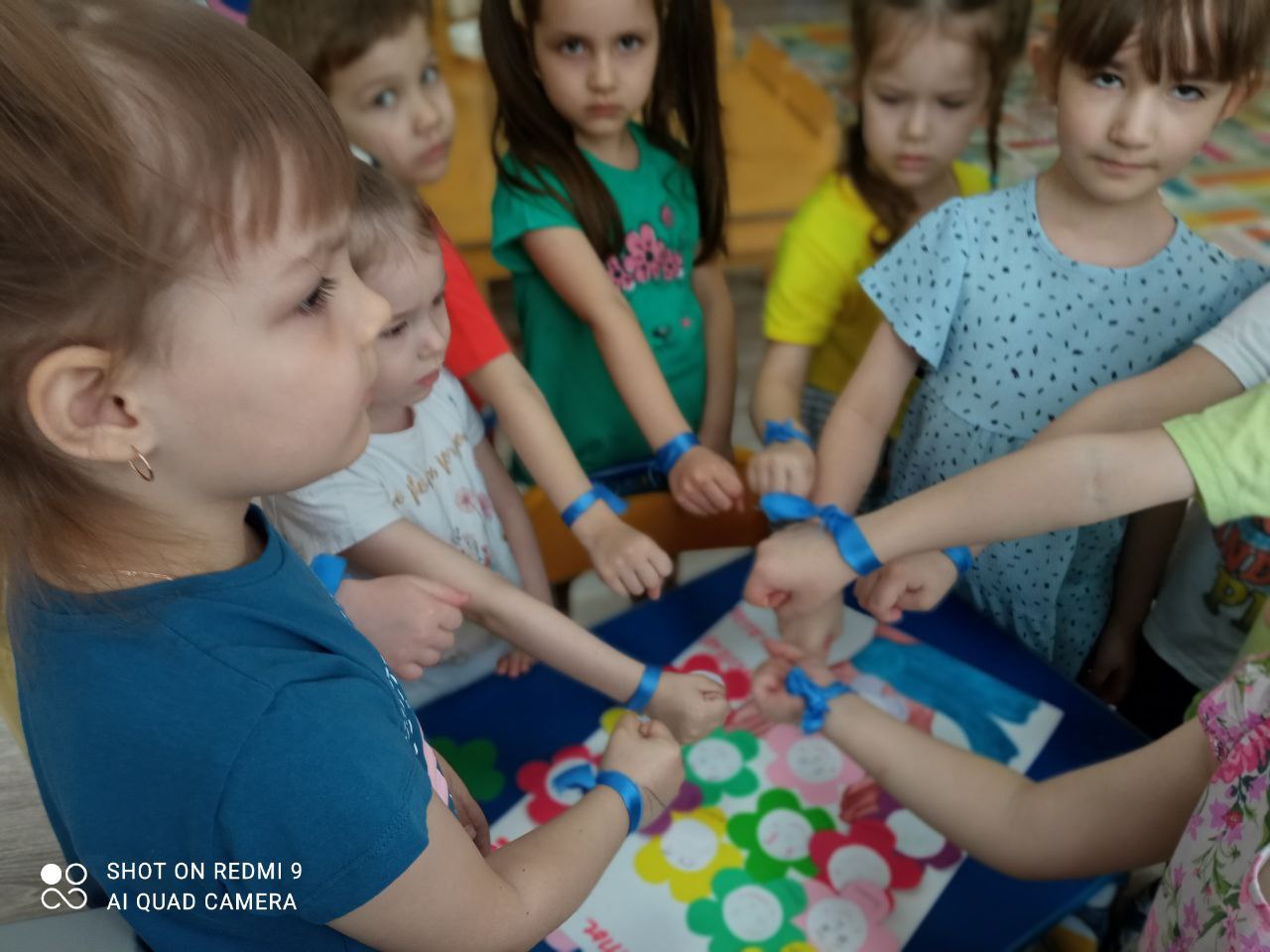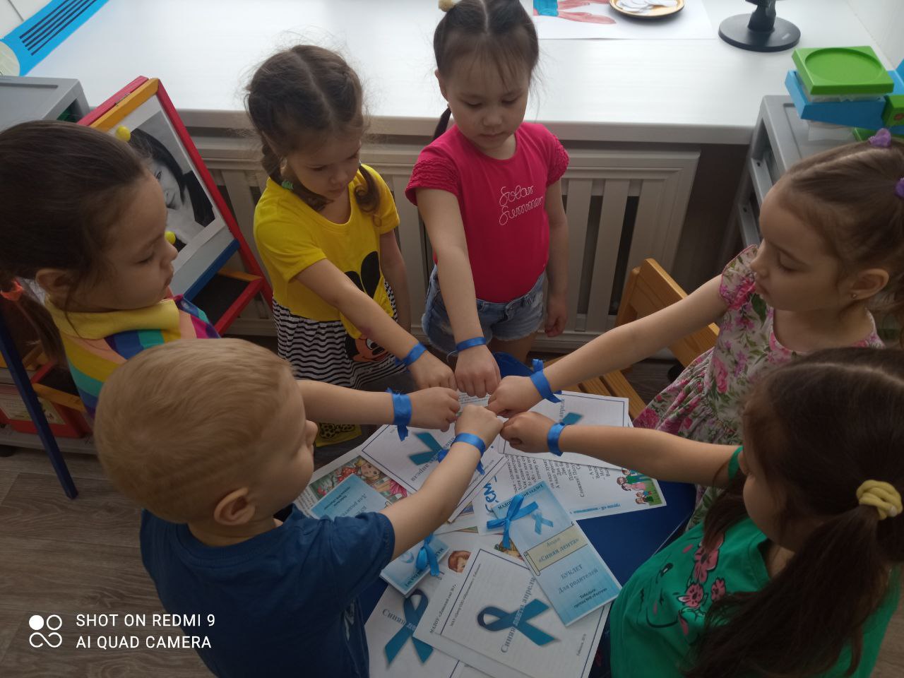 В течение дня ребята носили синюю ленту у себя на руке, показывая, что